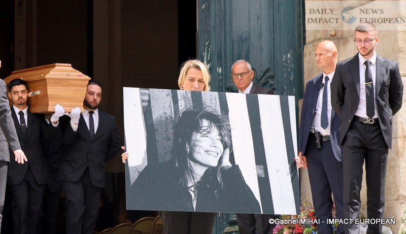She had wished that the song « Jane B » which, according to her, defined her accompanies her funeral. Many personalities were present at St Roch church around her daughters Charlotte Gainsbourg and Lou Doillon, her last companion Olivier Rolin and the actress’ 5 grandchildren (Ben, Alice and Joe Attal; Marlowe Jack Tiger Mitchell, Lou’s son and Roman de Kermadec, Kate’s son) to pay her a last tribute. Among them were Jacqueline, Serge Gainsbourg’s older sister, aged 97, Yvan Attal, companion of Charlotte Gainsbourg and Stéphane Manel, companion of Lou Doillon and father of her second child born in 2022, Olivier Gluzman, his agent, Andrew Birkin, his brother, actresses and actors Catherine Deneuve, Chiara Mastroianni, Carole Bouquet, Maïwenn, Charlotte Rampling, Emmanuelle Béart, Sandrine Kiberlain and her daughter Suzanne Lindon, Nicole Calfan, Bambou and her son Lucien Gainsbourg (Lulu), Jean-Luc Anglade, José Garcia, Pierre Arditi; the singers and singers Vanessa Paradis accompanied by Samuel Benchetrit, Sheila, Alain Souchon who came with his sons, Salvatore Adamo, Mathieu Chedid, Etienne Daho, Benjamin Biolay, Eddy de Pretto, as well as the presenter Nagui. The wife of the President of the Republic Brigitte Macron and the Minister of Culture Rima Abdul-Malak. had made the trip. Access to the church was reserved for relatives and guests, but a giant screen at the corner of rue S-Honoré and rue des Pyramides broadcast the ceremony live, which was followed by cremation at Père-Lachaise and then burial in the Montparnasse cemetery (division 11) alongside his daughter Kate who died in 2013 and not far from Serge Gainsbourg (avenue Transversale, 1st division, 1st section).