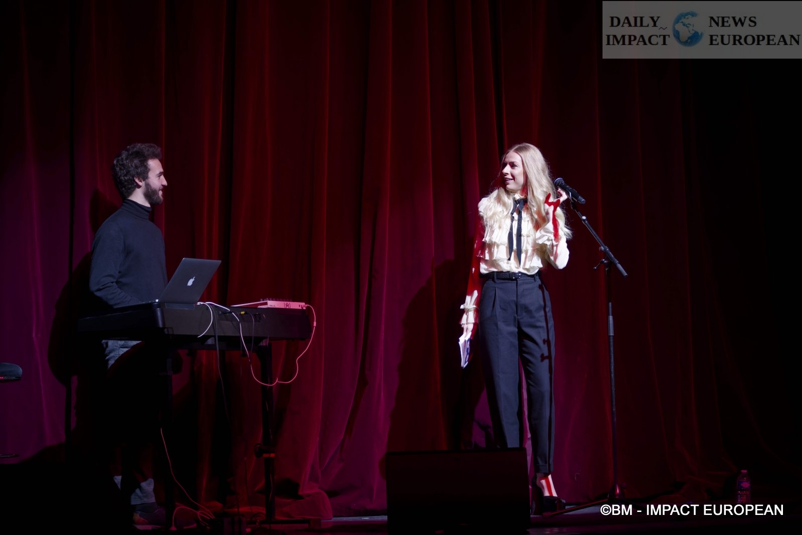 For this exceptional concert, the singer Violaine provides the first part. Young singer, songwriter from the Côte d’Azur, Violaine sang the titles of her EP « Rose Rouge » for the first time. She appeared on stage.