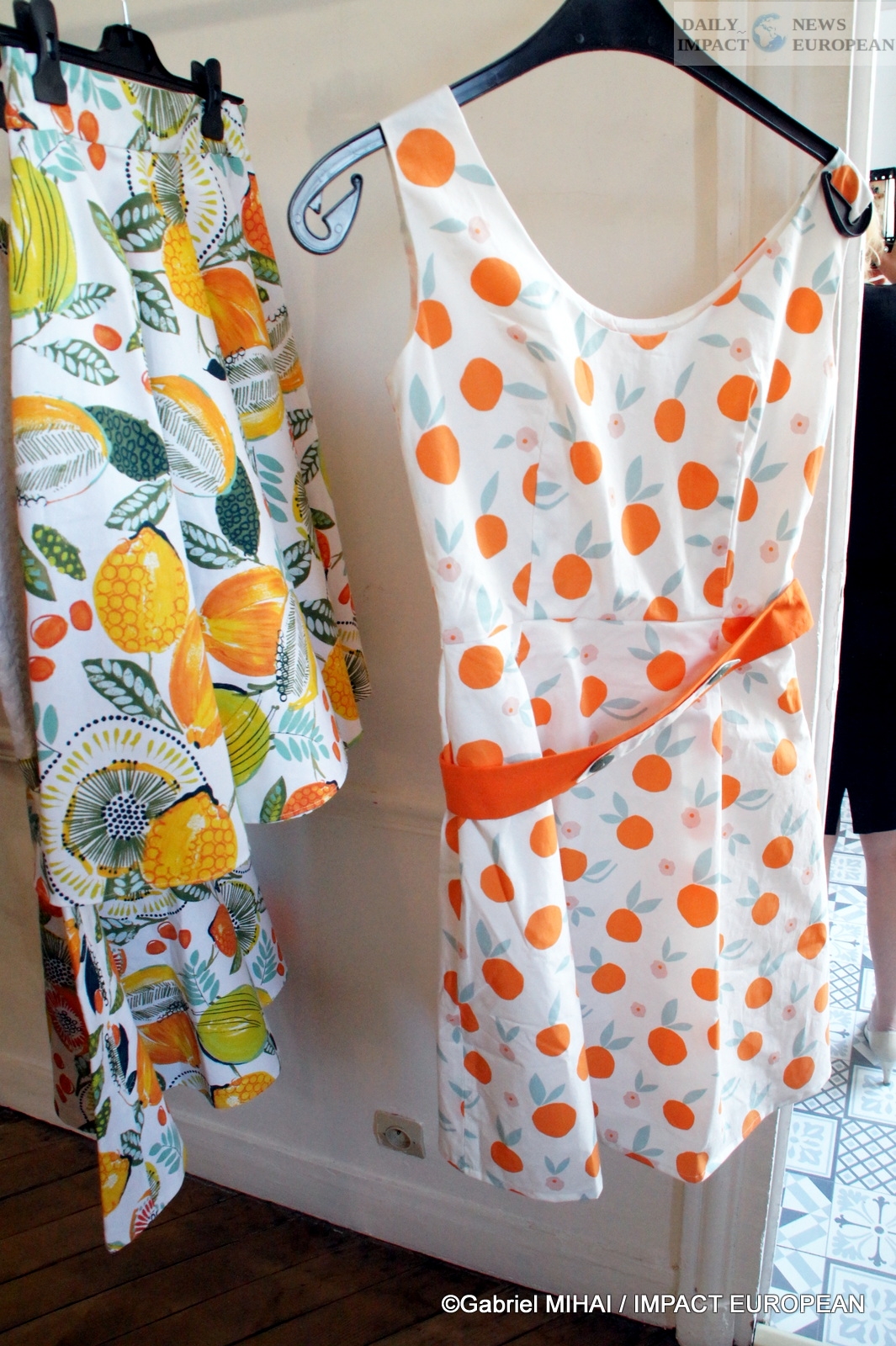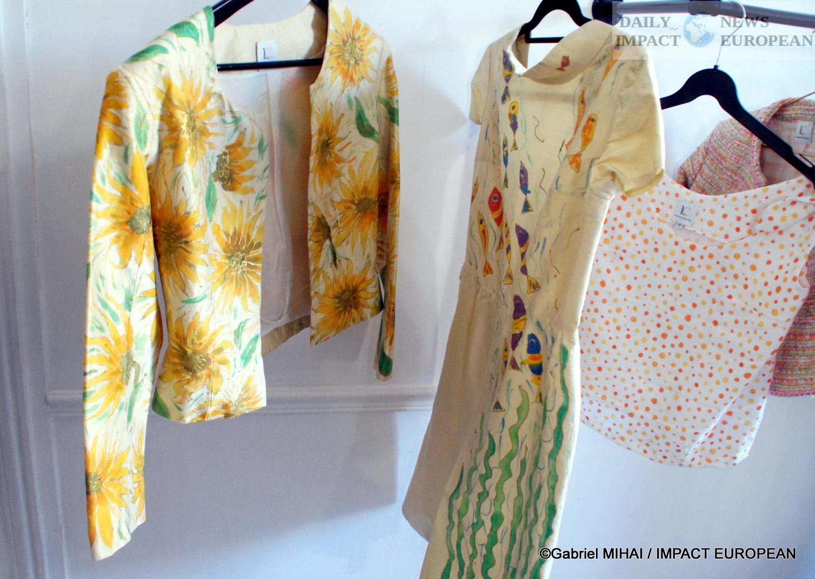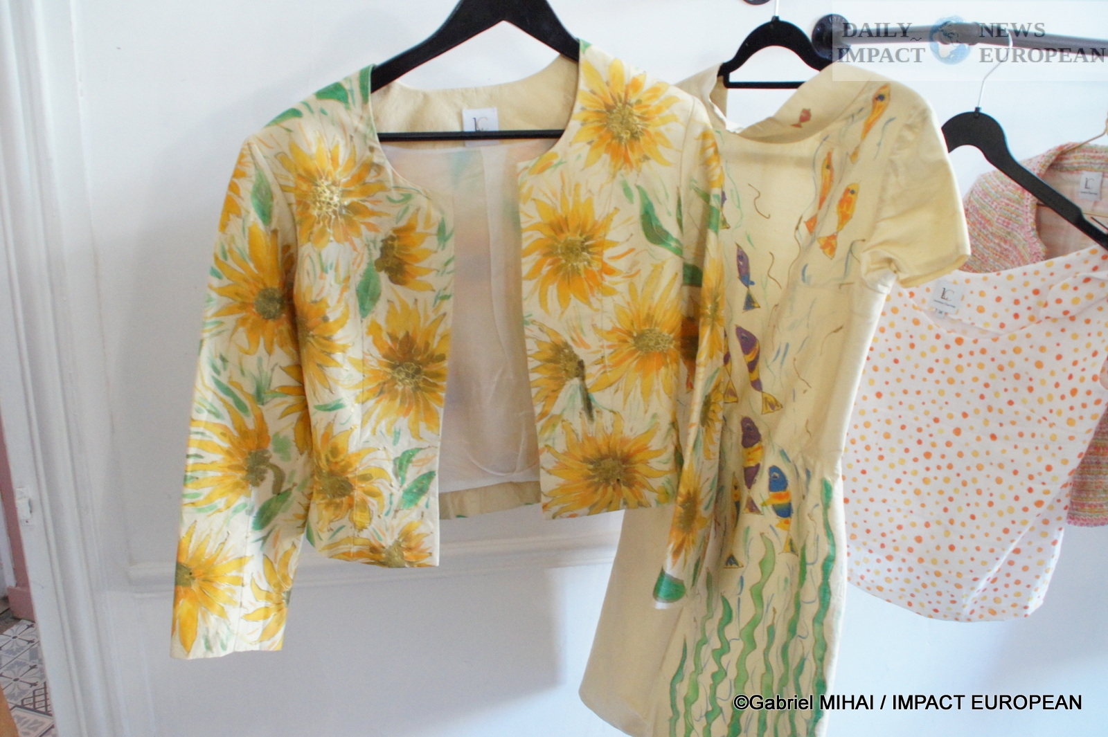 For the Sicilia-Bella Syracusa collection, the designer was inspired by Sicily. This is how we find citrus fruits, fish and flowers such as sunflowers. Customers can also choose their designs which she paints herself on the fabrics.