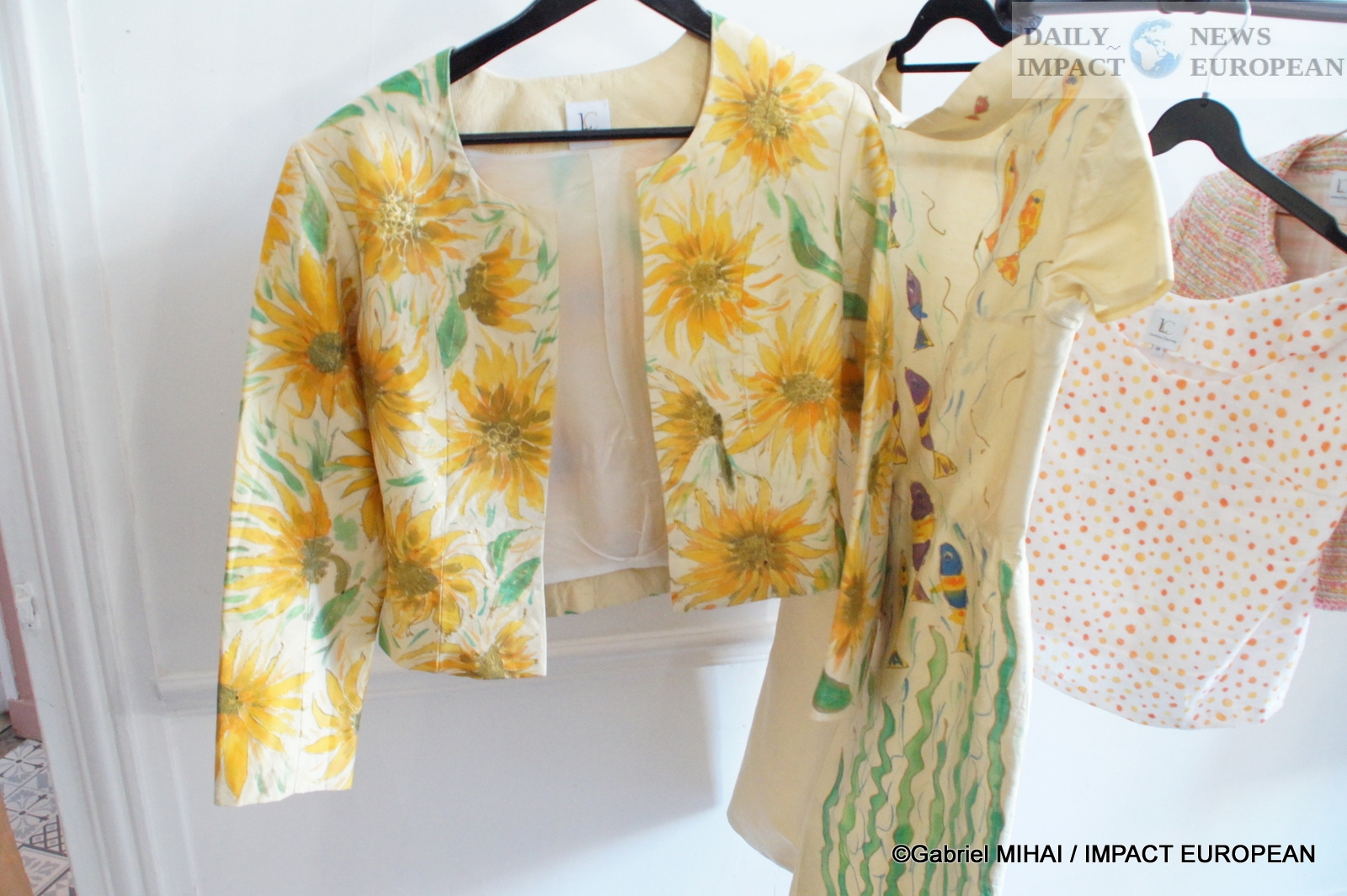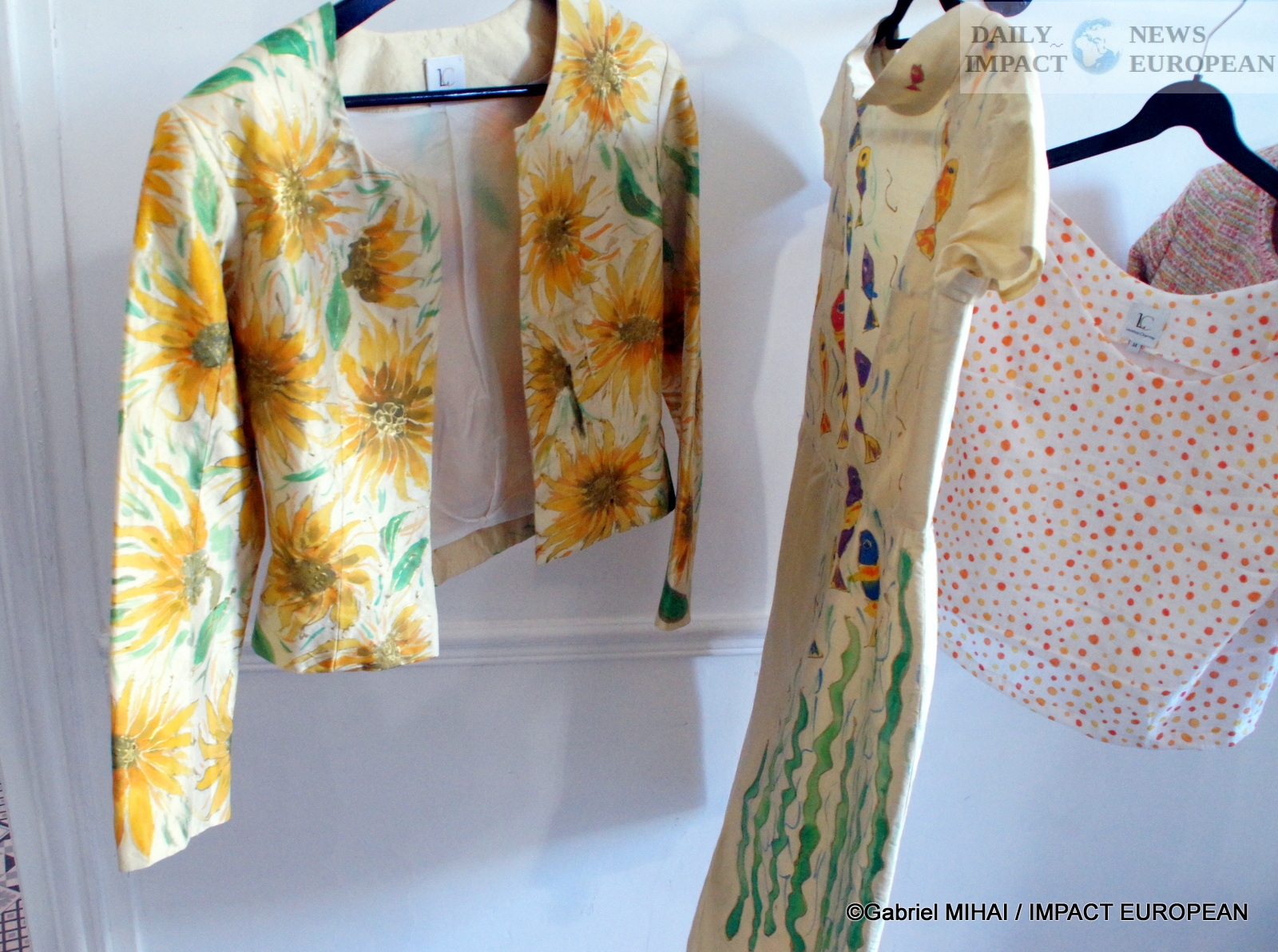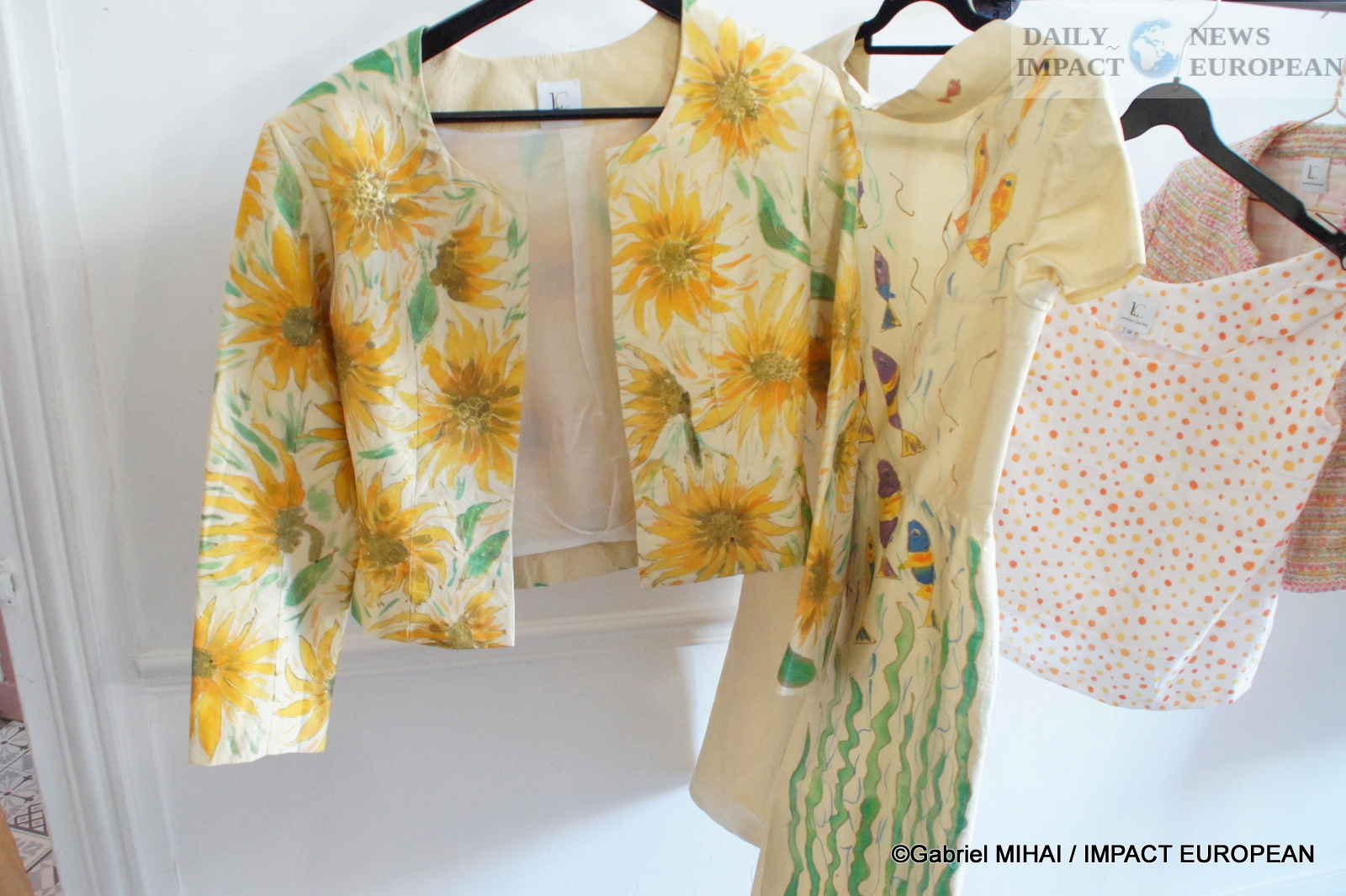 The materials used are noble materials such as silk, organic cotton, linen, seersucker (cotton crepe that does not need to be ironed), jacquard or tweed. Most clothes can be machine washed at 30 degrees and 600 rpm. The colors are more orange or beige and the patterns are inspired by Van Gogh (sunflowers), Matisse or Picasso.