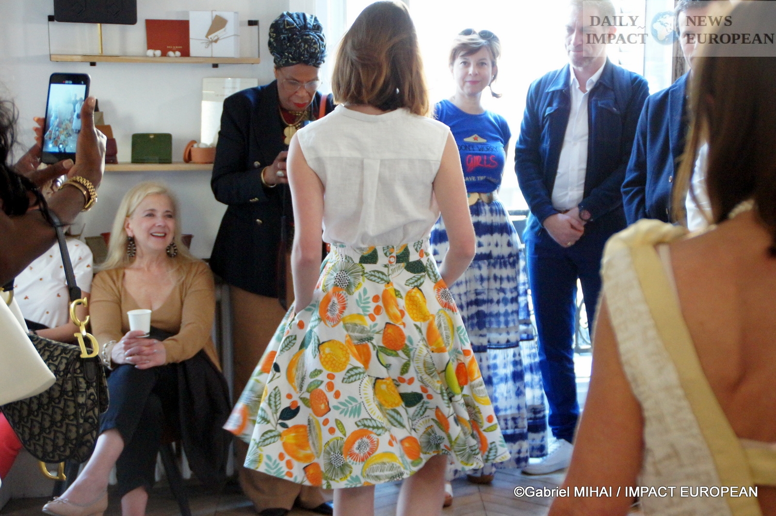 This new collection bears the name: « Sicilia-Bella Syracusa ». It evokes the sun, the sea and the Sicilian warmth thanks to the flowers, citrus fruits and fish found on the fabrics used by the designer. It’s also a nod to her favorite designers, Coco Chanel and Yves St Laurent, as well as to the 1950s and 1960s.