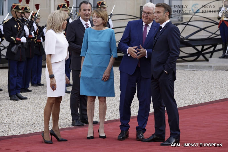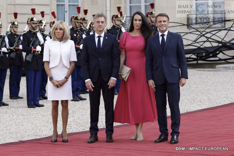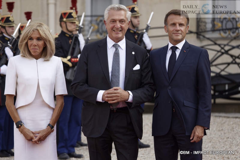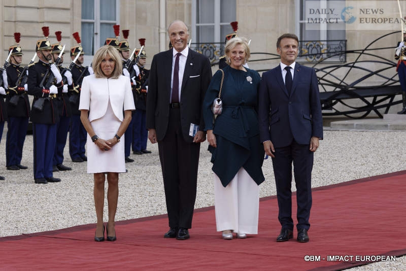 The reception begins at 5:15 p.m. in the main courtyard of the Élysée Palace. Emmanuel Macron and his wife received several monarchs: the Sovereign Prince of Monaco, Albert II, Henri, Grand Duke of Luxembourg and his wife Maria Teresa Mestre, as well as Princess Astrid of Belgium who is also an honorary member of the management committee of the International Paralympic Committee (IPC).