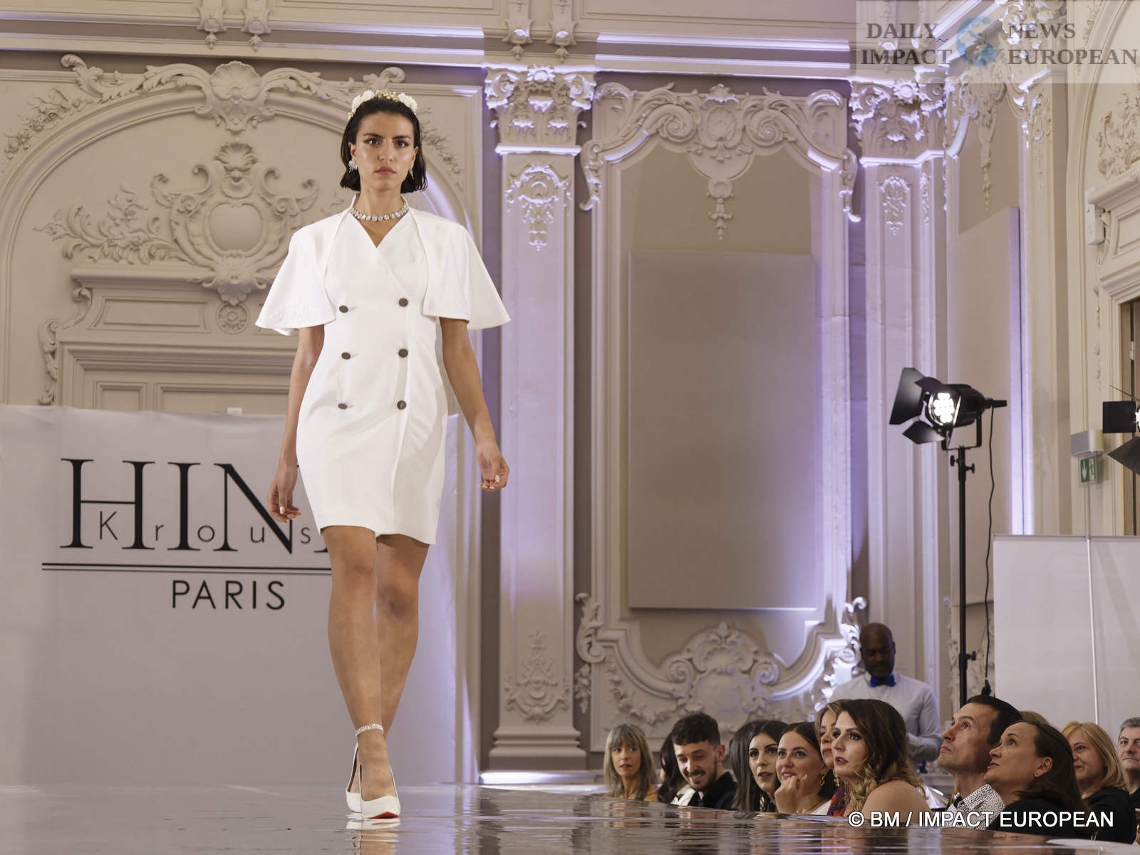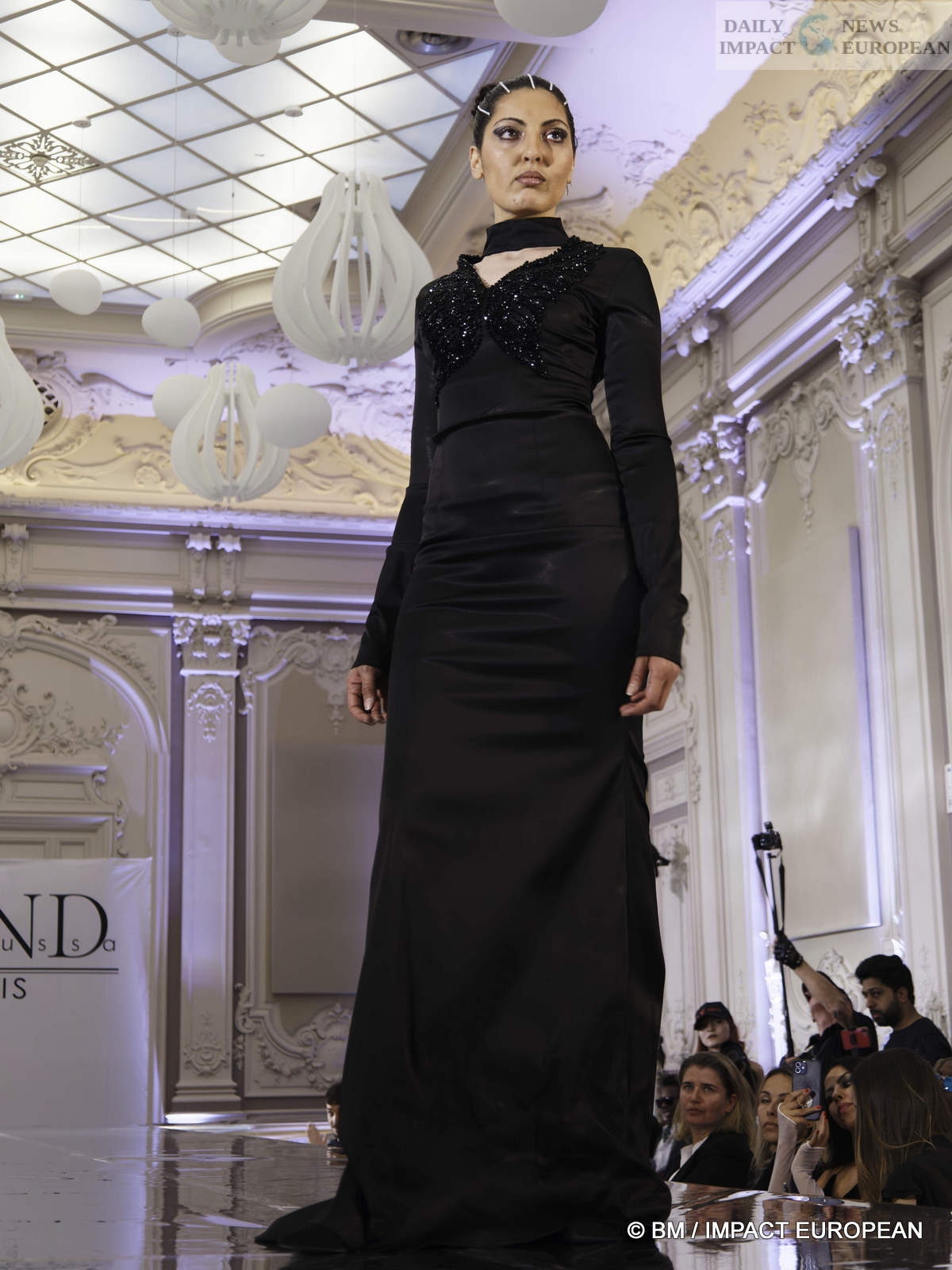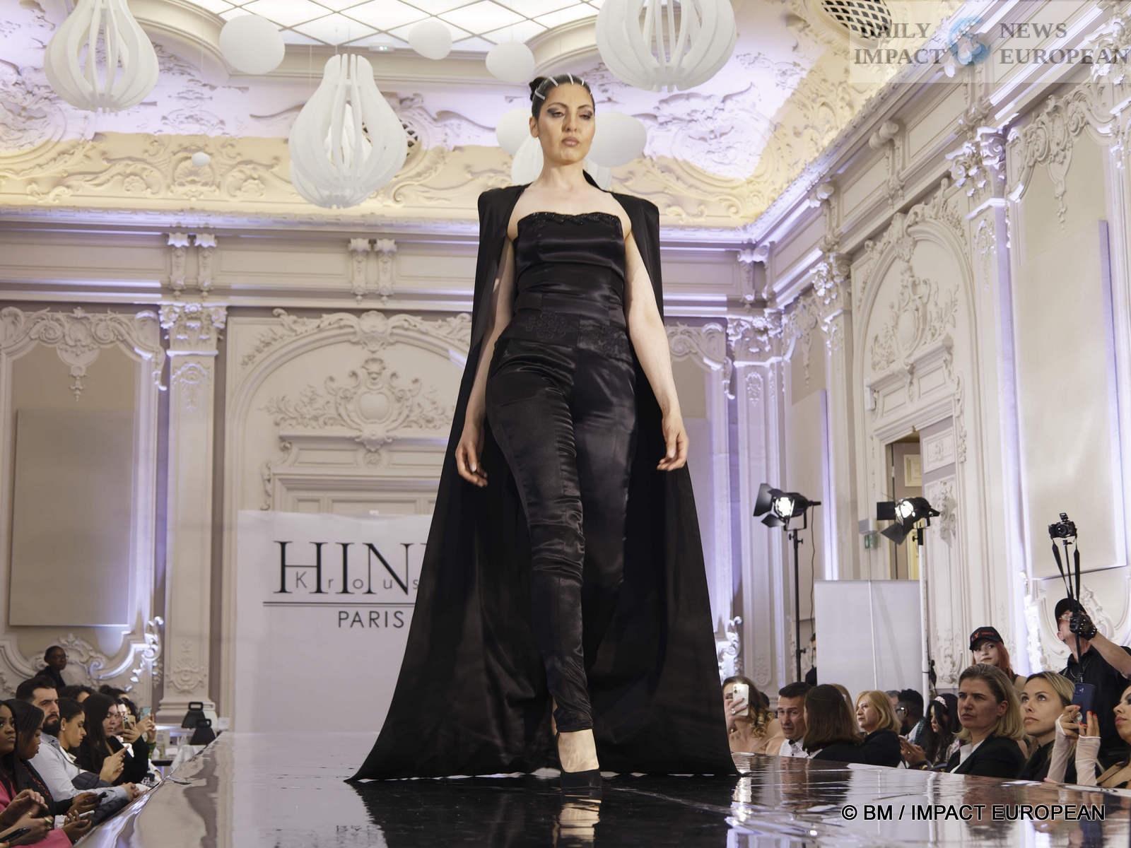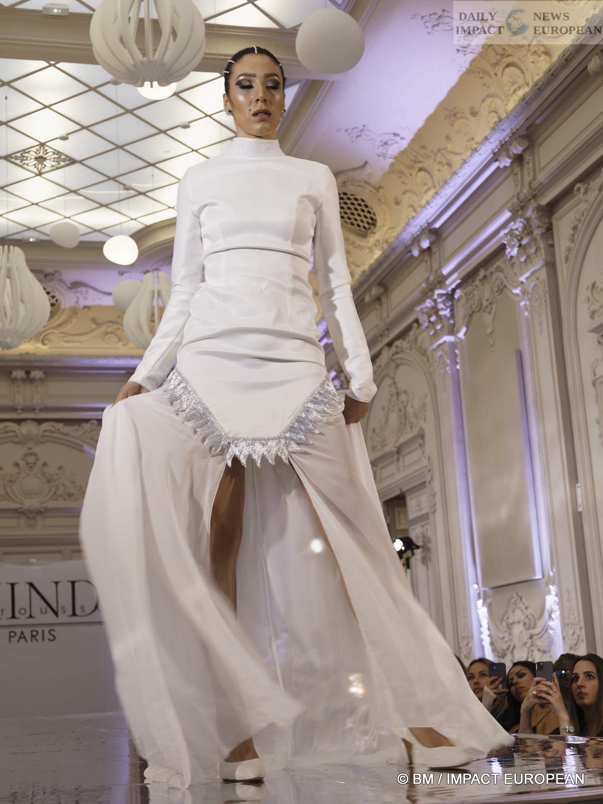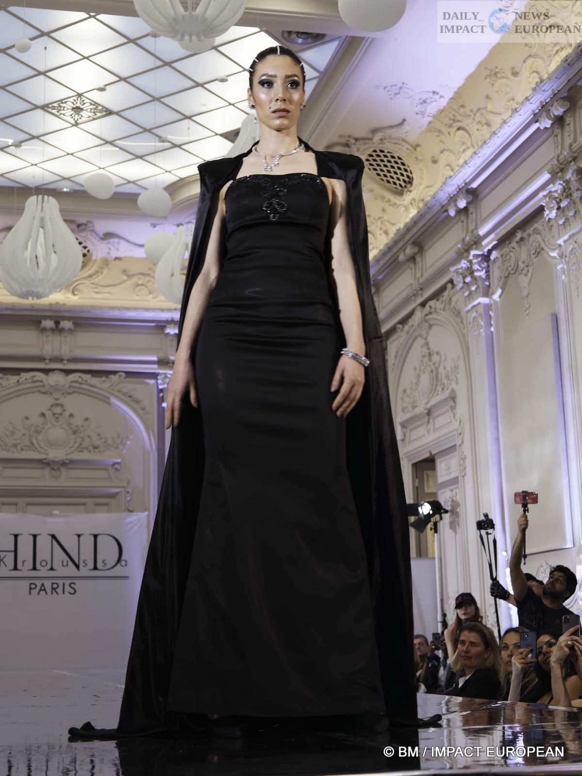 On May 6, the Hind Couture house organized a fashion show at the CCI, salle Yvonne Foinant (160 m²), 2 Place de la Bourse (75002). Choosing this place was to pay homage to the first woman elected in 1945 to the Paris Chamber of Commerce, but also to the founder of the association « Femmes Chefs d’Entreprises », an organization defending the representation of women in all economic bodies.