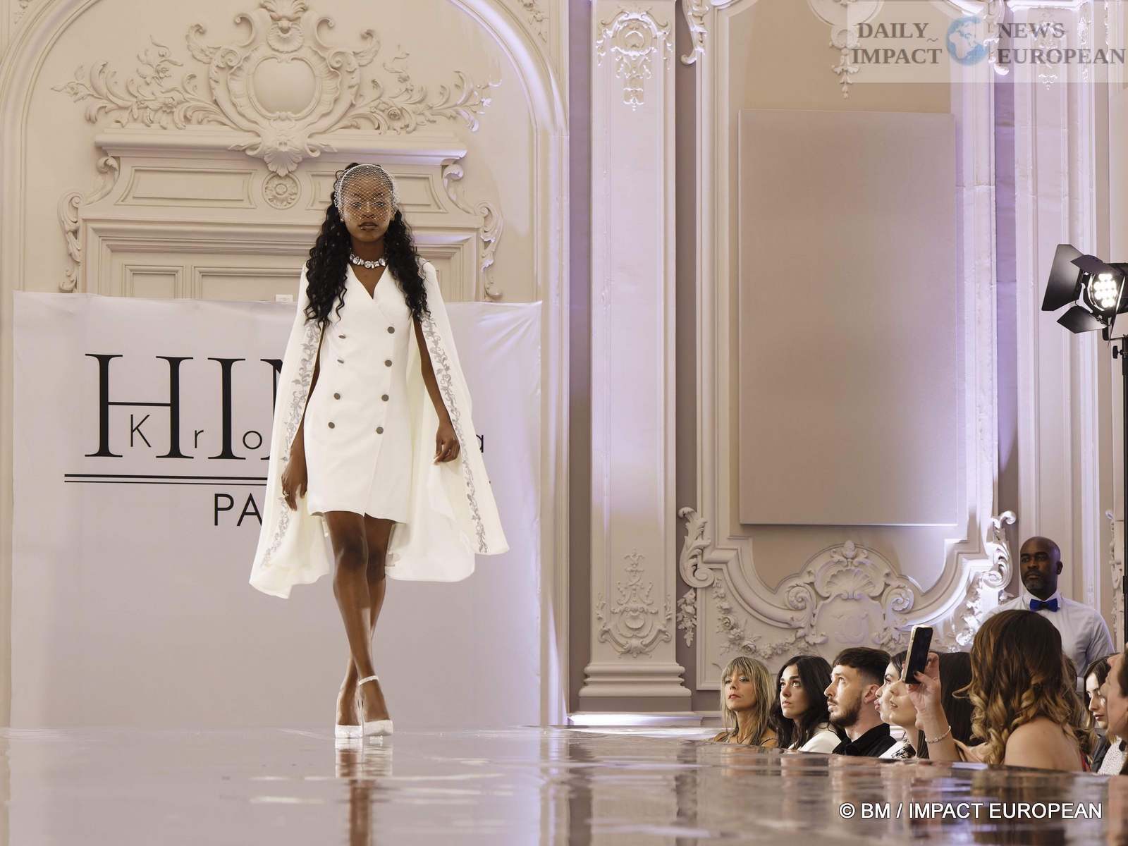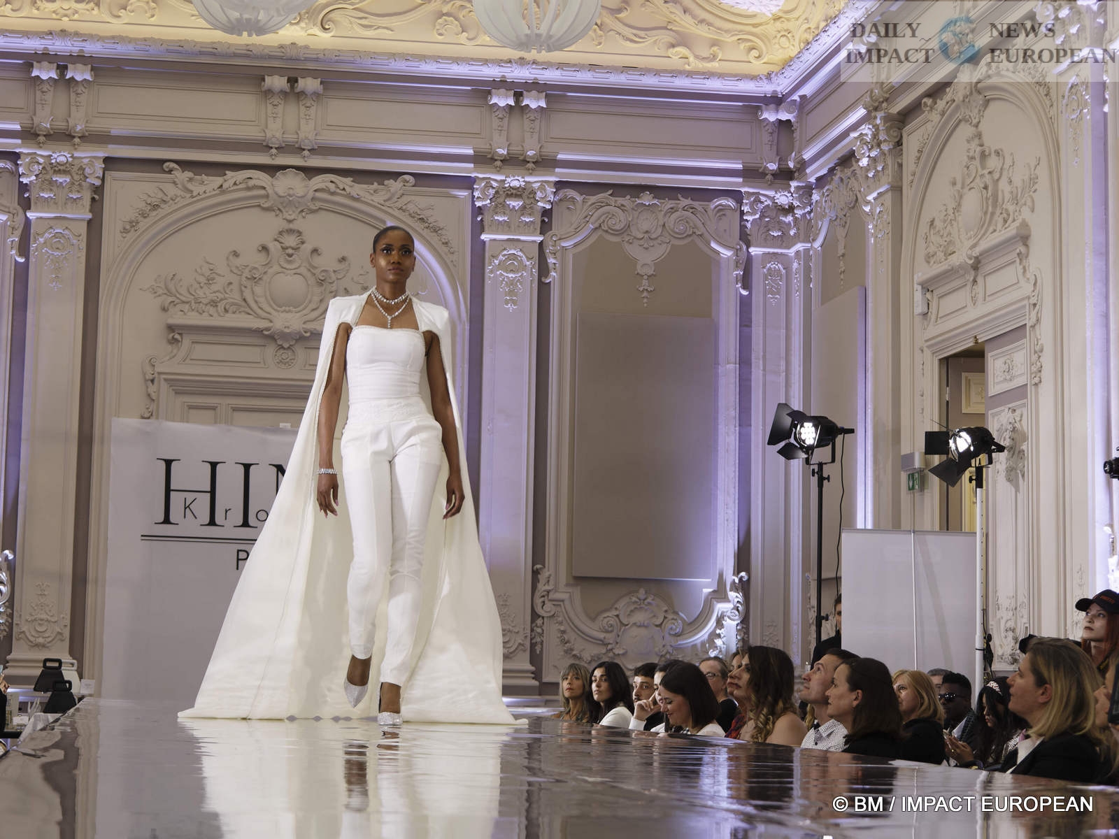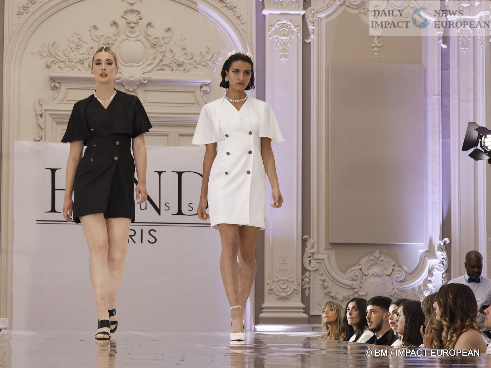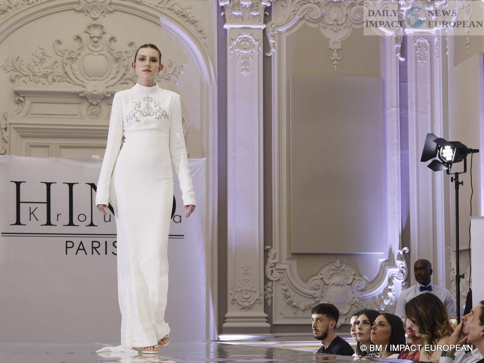 On May 6, the Hind Couture house organized a fashion show at the CCI, salle Yvonne Foinant (160 m²), 2 Place de la Bourse (75002). Choosing this place was to pay homage to the first woman elected in 1945 to the Paris Chamber of Commerce, but also to the founder of the association « Femmes Chefs d’Entreprises », an organization defending the representation of women in all economic bodies.