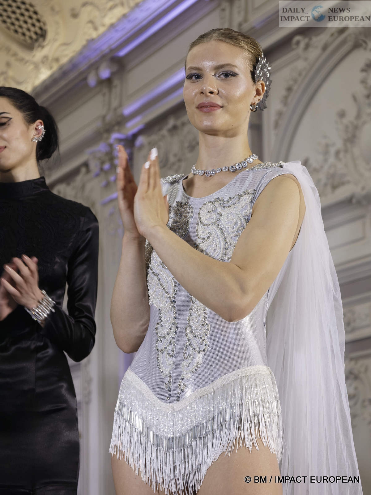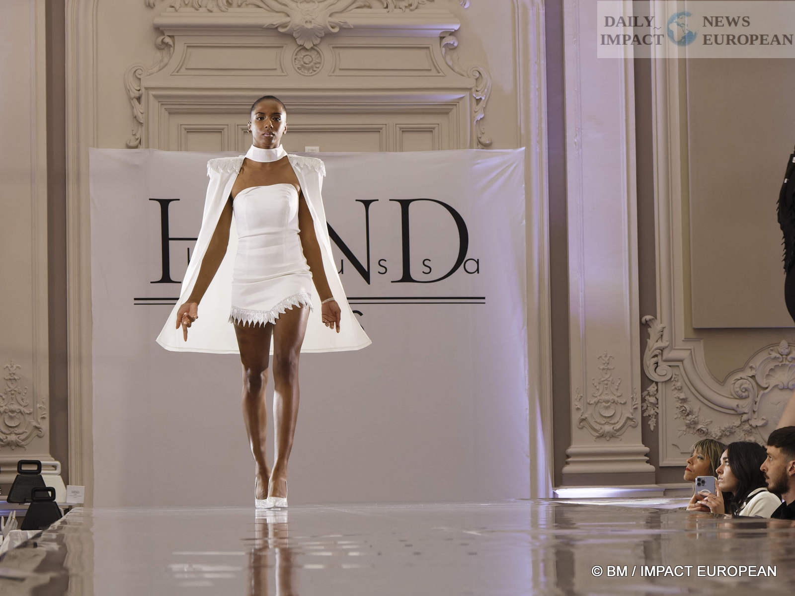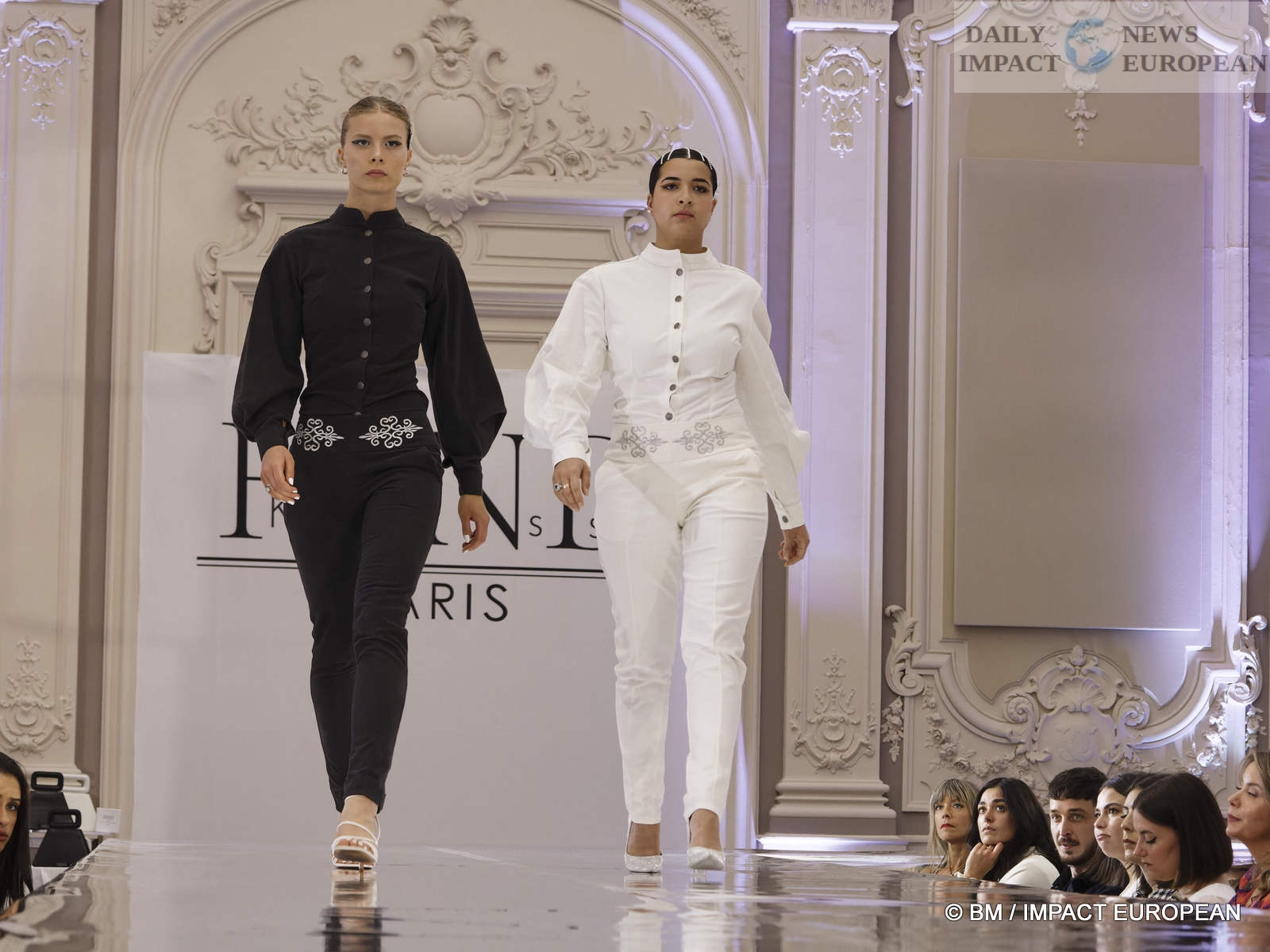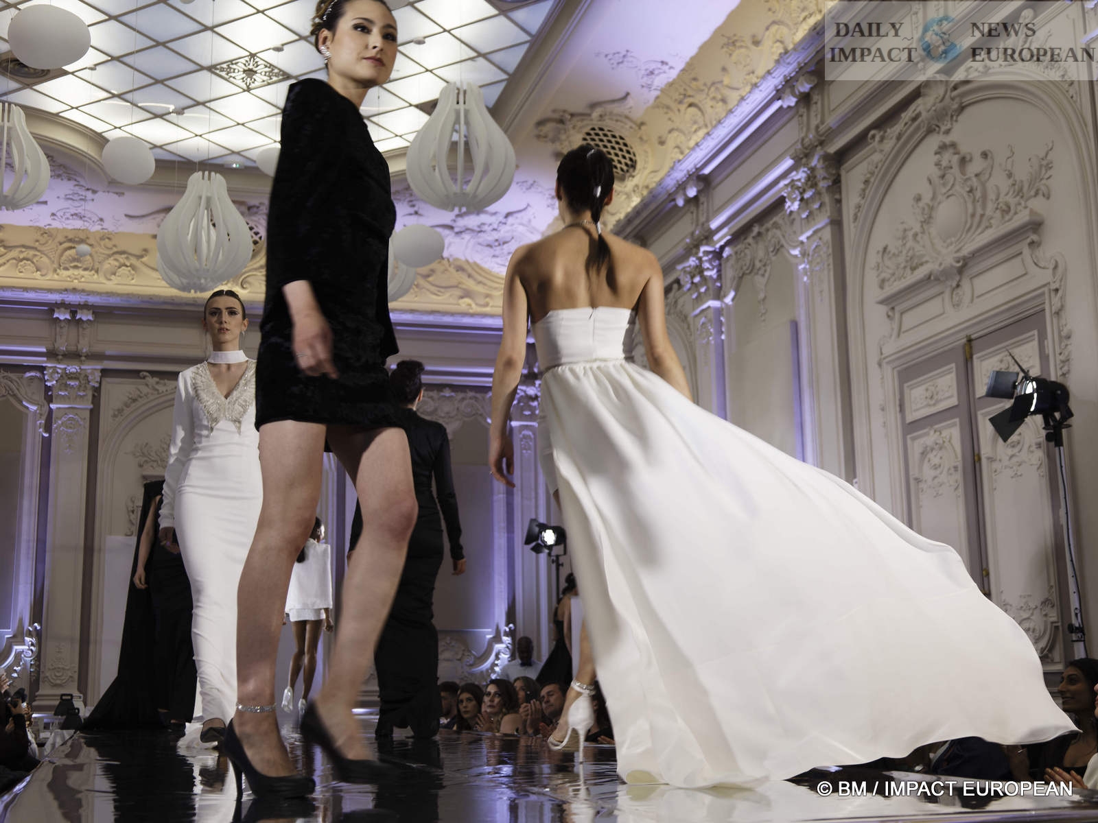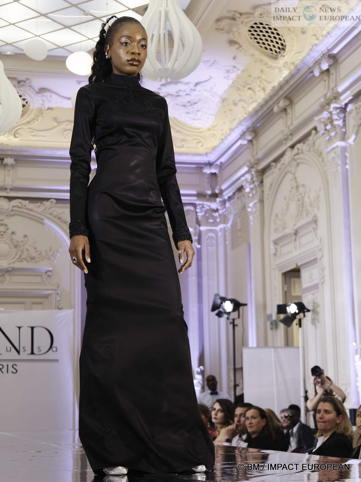 On May 6, the Hind Couture house organized a fashion show at the CCI, salle Yvonne Foinant (160 m²), 2 Place de la Bourse (75002). Choosing this place was to pay homage to the first woman elected in 1945 to the Paris Chamber of Commerce, but also to the founder of the association « Femmes Chefs d’Entreprises », an organization defending the representation of women in all economic bodies.