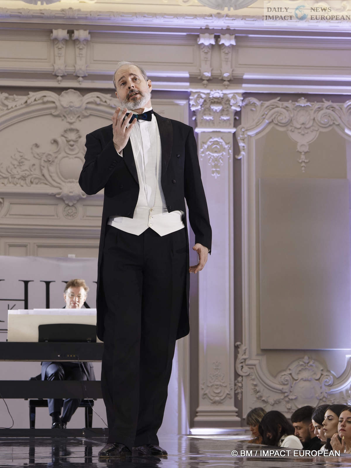 For 2 hours, the models presented the second collection, made up of 44 models divided into 6 collections (dresses, pants, jumpsuits, evening wear, etc.) each bearing the name of a stylist or collaborator of the house. (Emma, Anaïta, Lumia, Véra, Nouria, Kira…) A tenor and his pianist interspersed the parade with opera tunes.