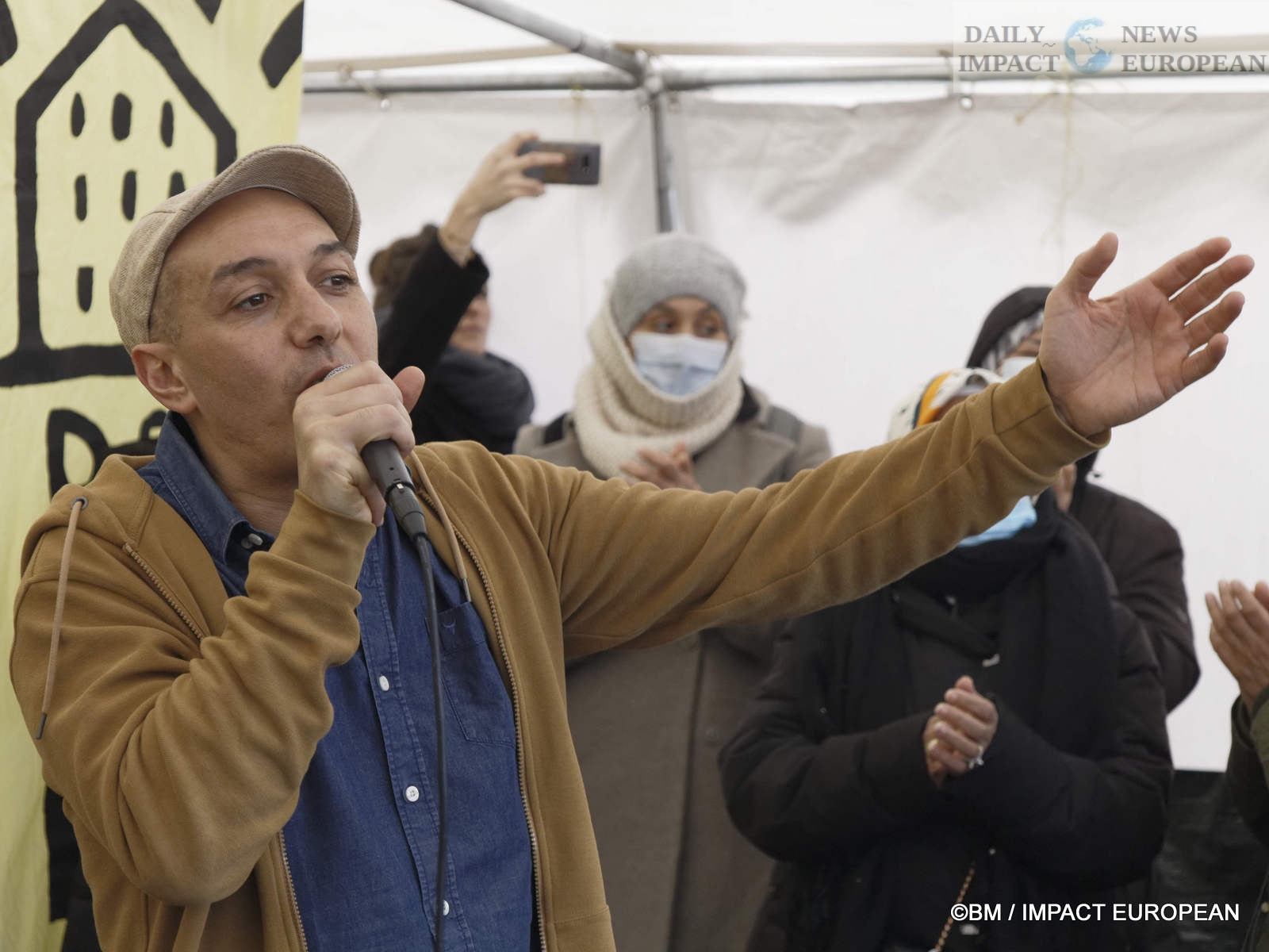 For this united and fraternal moment, he evoked the words of Abbé Pierre: « To govern is first of all to house your people! » and invited the participants to bring their instrument to play with him on his titles: « Dancing again », « Tell them that we love each other » or « We don’t let go ».