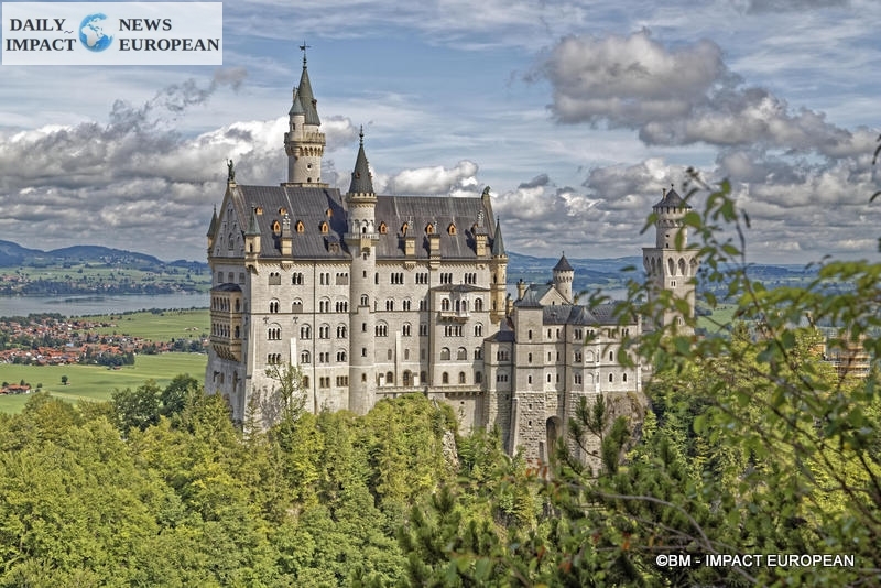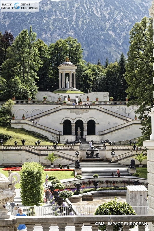 Located on Lake Starnberg, Berg’s family castle and its white turrets was built in 1676 by Ferdinand-Marie of Bavaria and acquired in 1832 by Maximillian II. Summer residence of Louis II, he built a chapel in 1876. The lake has an island called « Ile aux Roses » where Louis II loved to come isolate and in the center of this island, is the casino of his father of Pompeian style. Many guests were received, such as Tsarina Maria Alexandrovna or Empress Elizabeth of Austria. At the bottom of the lake, remnants of prehistoric village dwellings are part of UNESCO’s world cultural heritage. After his dismissal, it was unfortunately the scene of the disappearance of the monarch in the waters of the lake.
