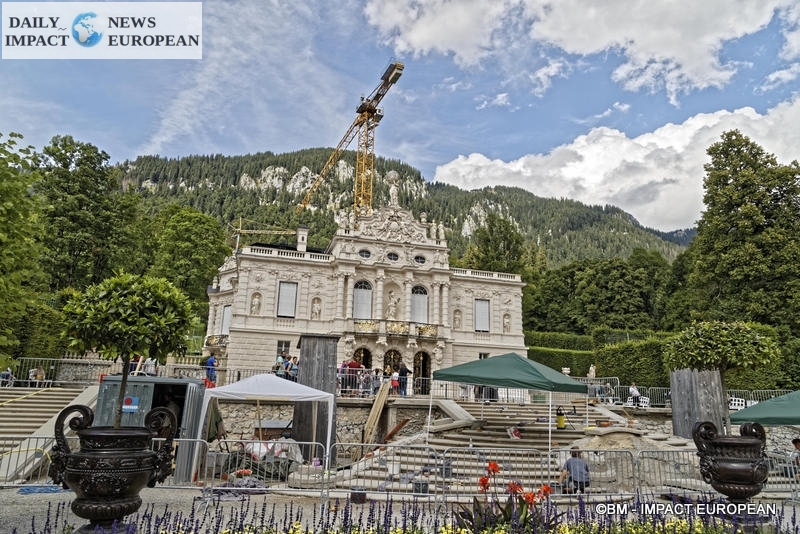 The construction of Linderhof Castle, its park and its buildings began in 1874 and ended in 1878. The favorite place of the king, it was the only castle to be completed during his lifetime. There is an 18th century rococo style in the castle where all rooms have a different color. All styles (English, French and Italian) are found in the gardens. Wishing to reproduce the scene of « Tannhauser », of Wagner’s opera, Louis II had arranged behind the artificial rocks, the Cave of Venus « , the » Blue Grotto « and the » Valley of Kashmir « where a boat crosses an underground river In the park, the Moorish kiosk, bought at the Universal Exhibition of Paris and a mysterious hut, the Hundighütte seem to come out of another world.