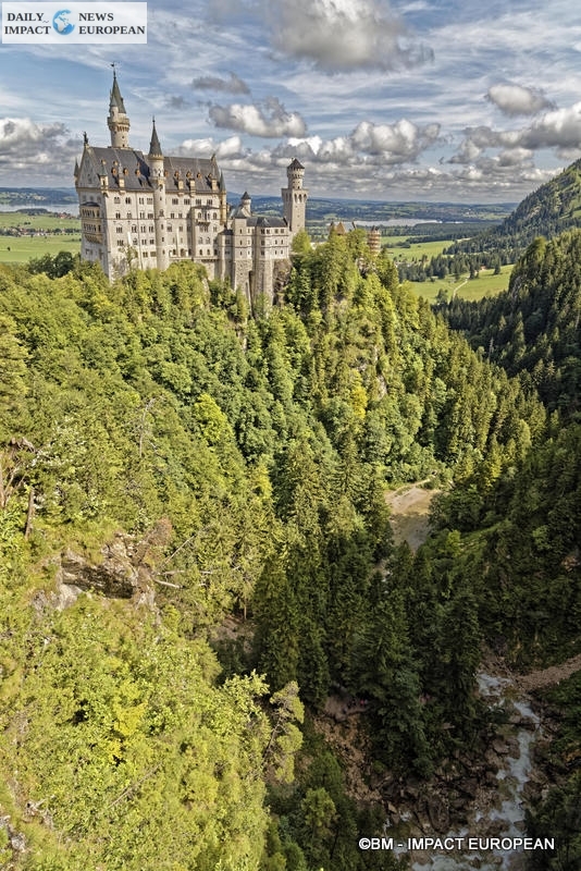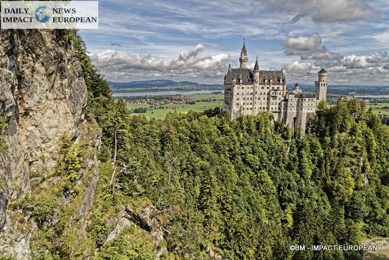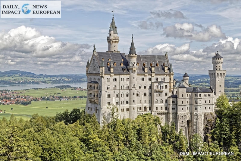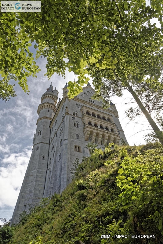 Located on the ruins of a castle facing Hohenschwangau Castle where Louis II spent much of his childhood with his mother, the largest shipyard of the monarch was in 1868 Neuschwanstein (The New Swan Rock), mix of Middle style old and dreamy. Built after restoration by Viollet the Duke of Pierrefonds (France) on a 200-meter rocky spine, he inspired Walt Disney for the Sleeping Beauty’s Castle. The interior decoration is based on a style dear to the composer Richard Wagner and would be the place where appeared Lohengrin
