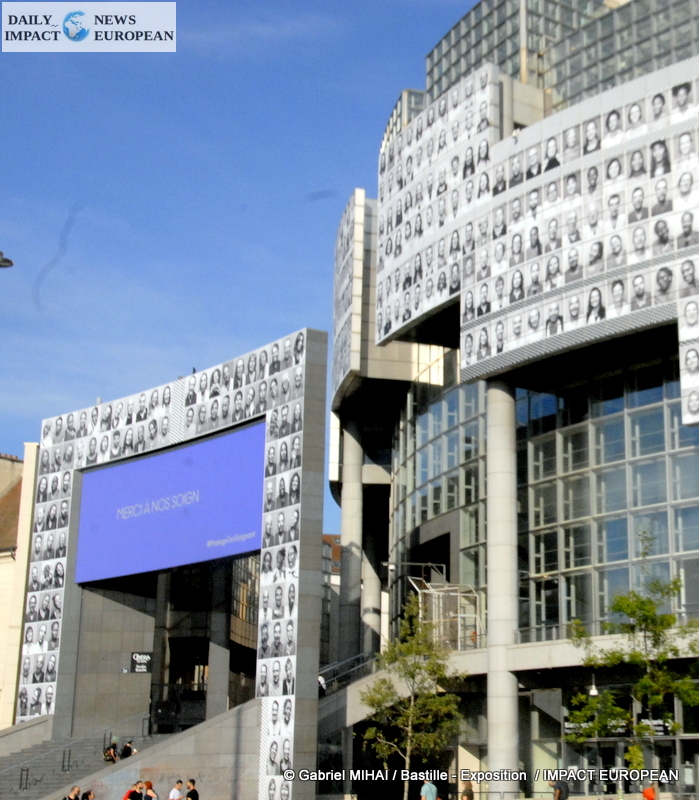 JR, the contemporary artist who owes his notoriety to the technique of photographic collage makes you discover his new work in the center of Paris, on the facade of the Bastille Opera where he brought together 500 faces of caregivers in collaboration with the collective » Protect your caregiver. »