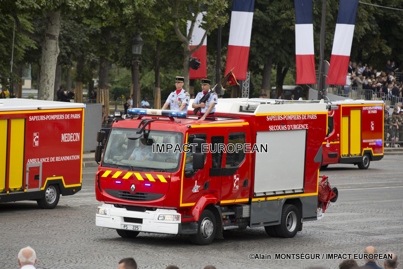 The final painting of the parade is devoted to the wounded of the armies, echoing the parade of July 14, 1919, opened, 100 years earlier, by the disabled and broken jaws of the First World War. Three residents of the wheelchair Invalides marched alongside three soldiers recently injured in operations, to the sound of the music of the fire brigade of Paris. They were joined by injured athletes, symbols of reconstruction.