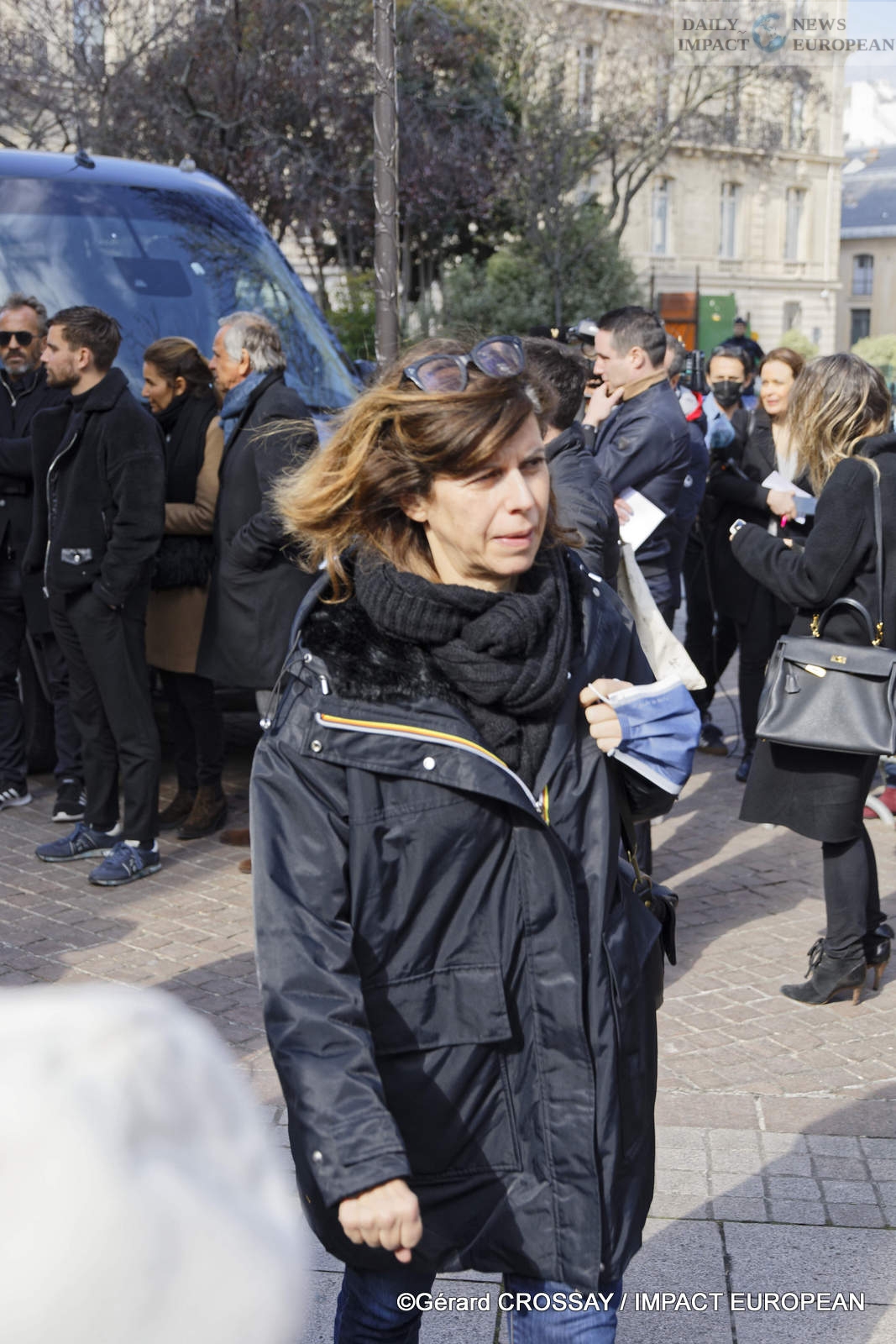 At the end of the mass, the coffin came out to the sound of Johnny’s title « Oh Marie! » and applause, preceded by a black and white photo of the presenter. The father of the Morandais who united the couple in 2007 blessed the coffin before the widow placed a last kiss there.