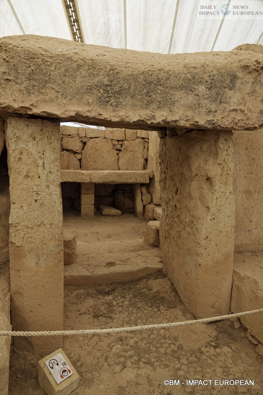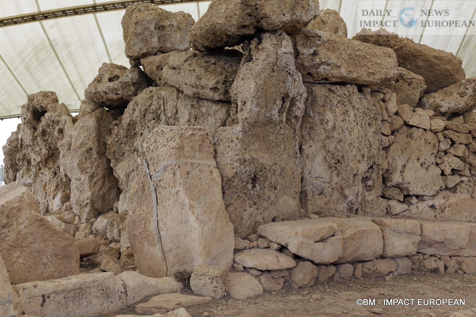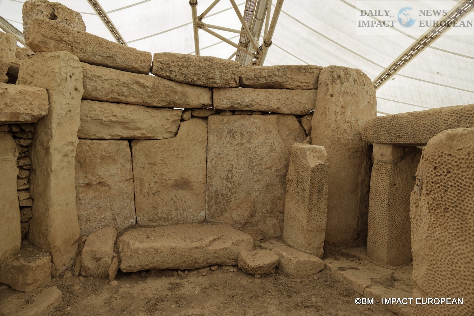 The middle temple was built at the end of the Tarxian period between 3150 and 2500 BC. JC. it comprises slabs surmounted by horizontal stones. On the facade, we can see 3 doors and 1 porthole which lead to rooms and discover an engraving.