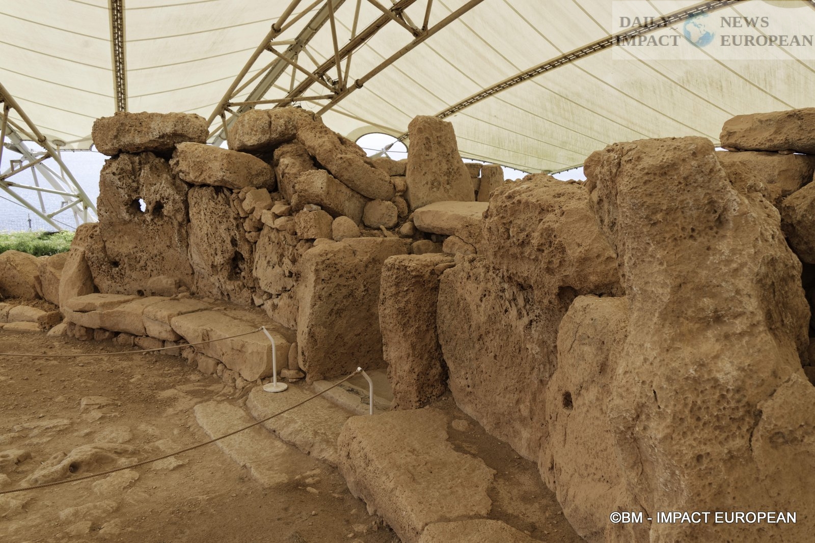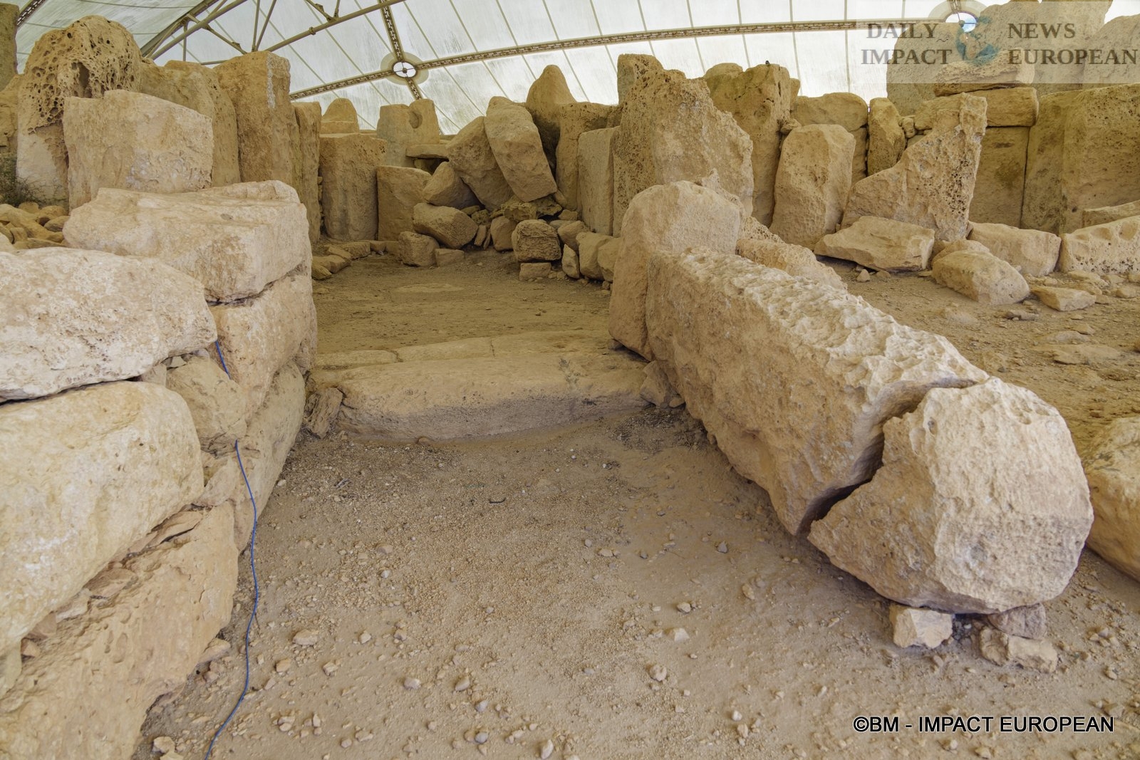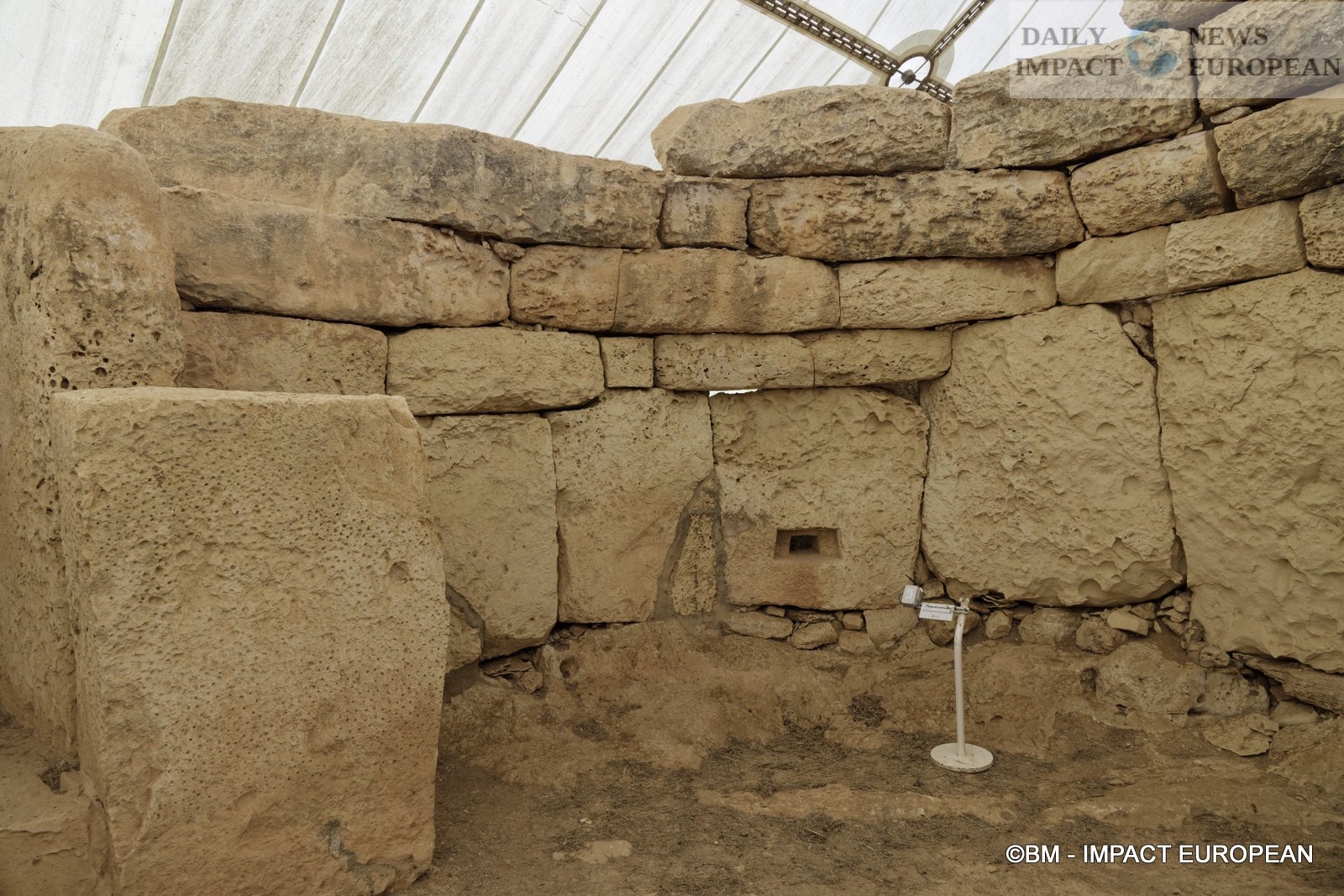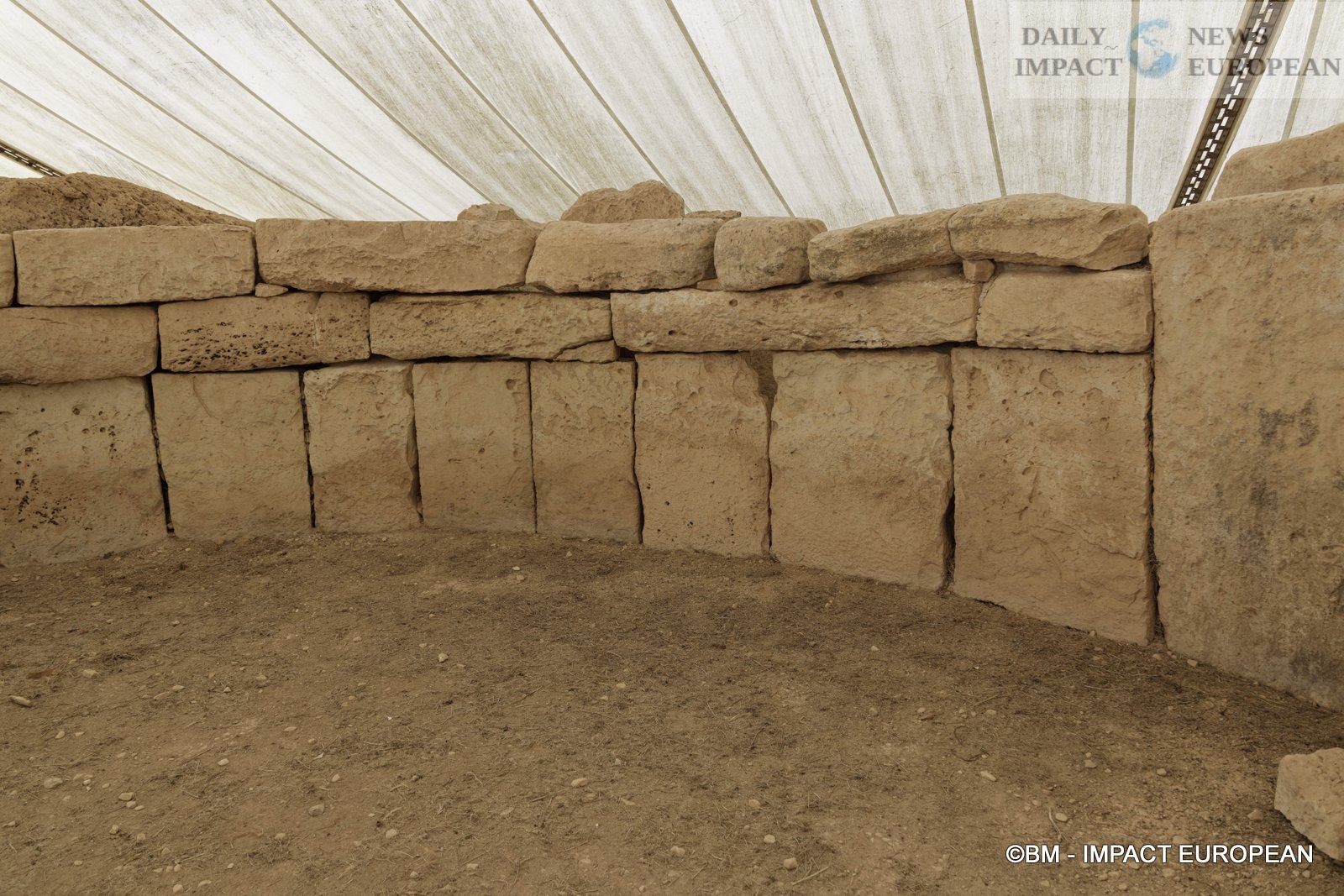 The middle temple was built at the end of the Tarxian period between 3150 and 2500 BC. JC. it comprises slabs surmounted by horizontal stones. On the facade, we can see 3 doors and 1 porthole which lead to rooms and discover an engraving.