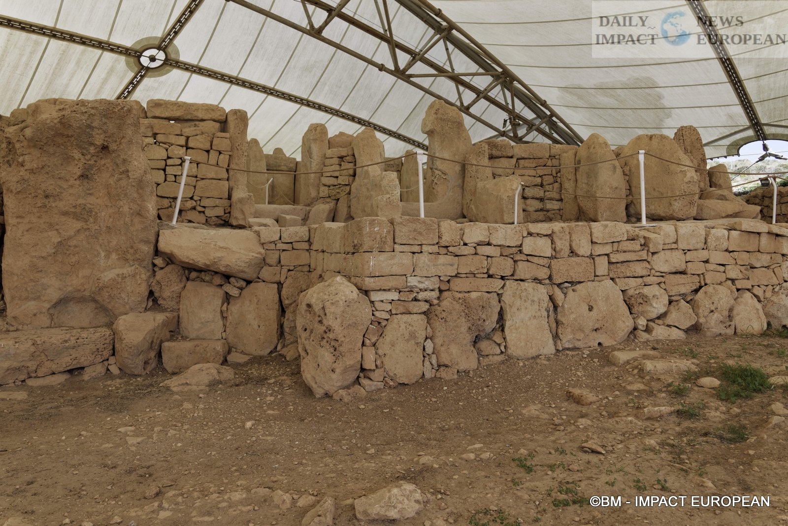 Mnajdra includes 3 neolithic sanctuaries in the shape of a trefoil. These ruins have an archaeological and aesthetic interest thanks to a unique architecture despite its millennia of existence. Their facade was built on the basis of fairly resistant limestone slabs.