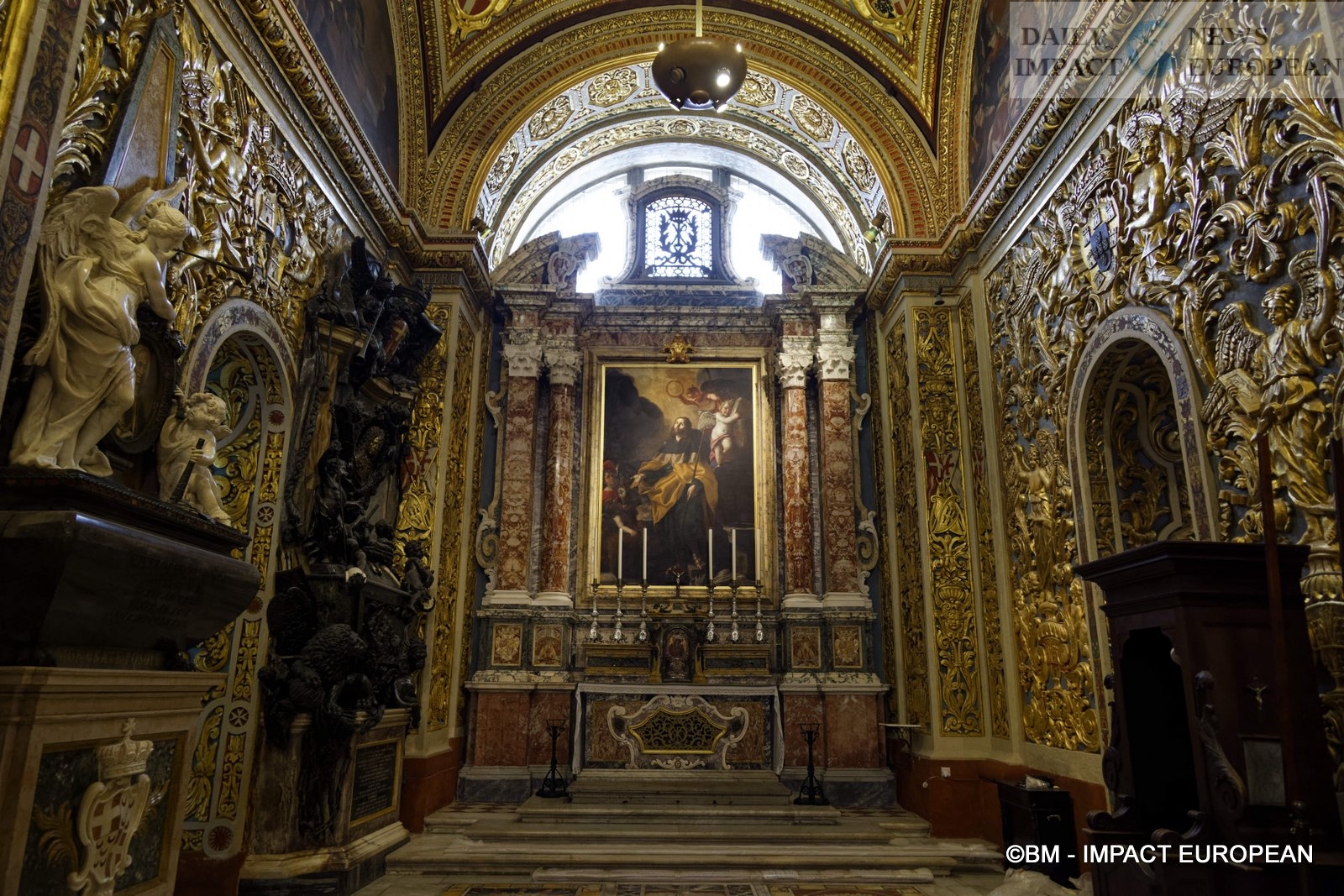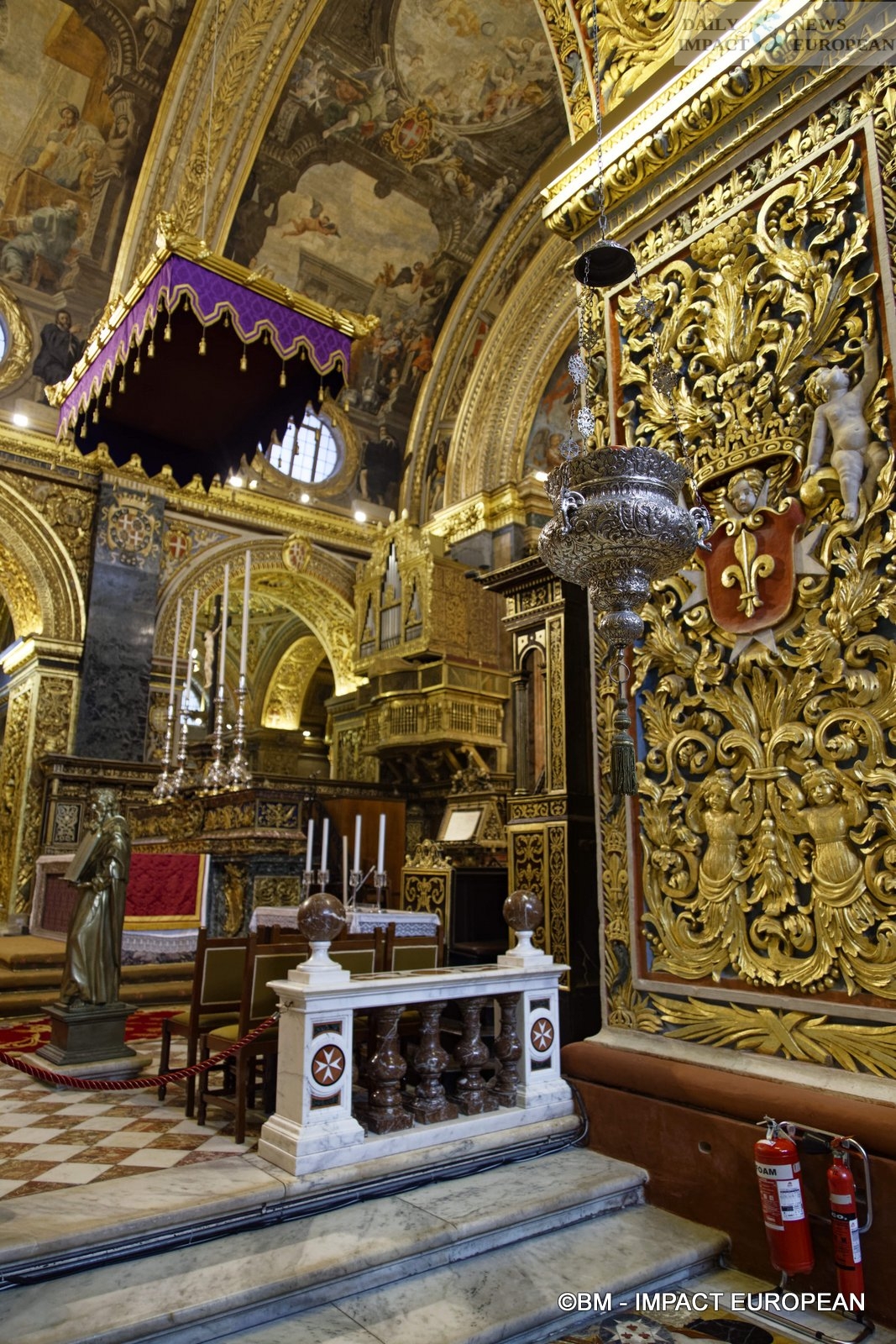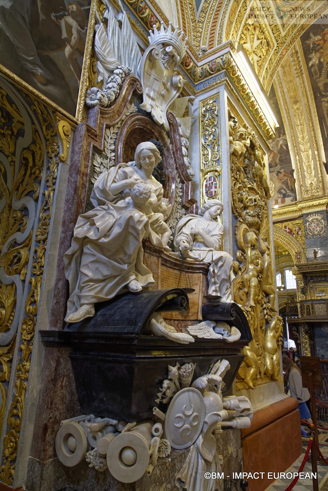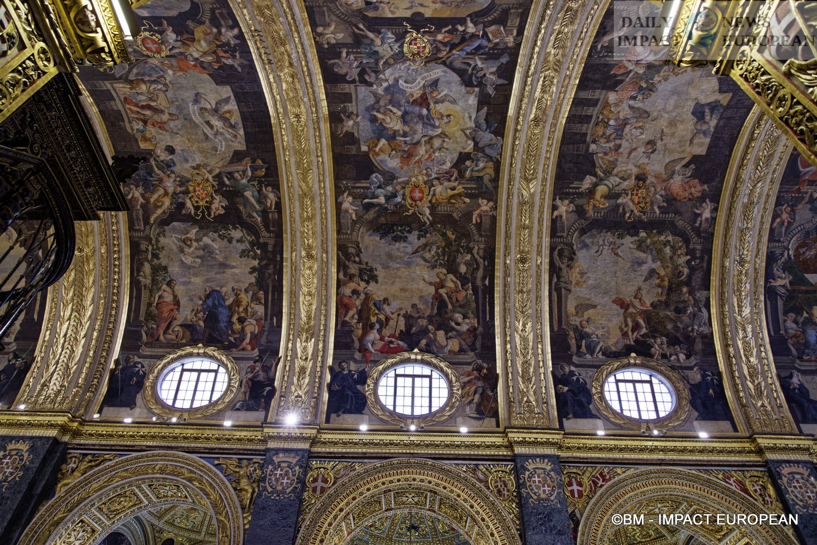The cathedral is formed by a central nave under the floor of which are buried 400 knights of the Order, among which the founder of the capital, Jean Parisot de la Valette, and 8 chapels which represent the different languages spoken by the order. Each of them is decorated with motifs and symbols belonging to the nationality they represent. Martin Preti is the Italian master who decorated the vault with figures as well as the high altar with scenes from the life of St John the Baptist. The walls are carved in stone.