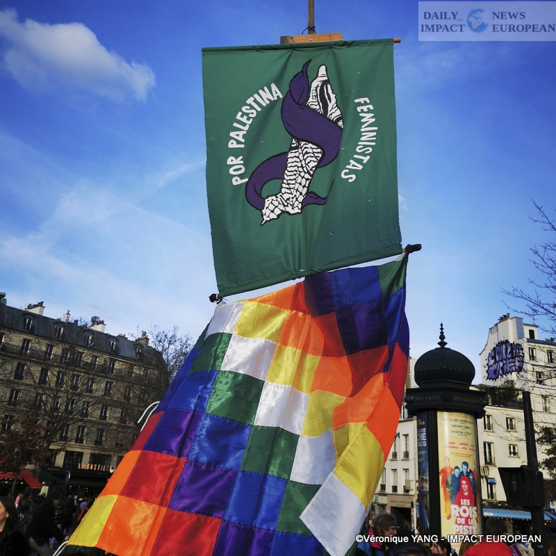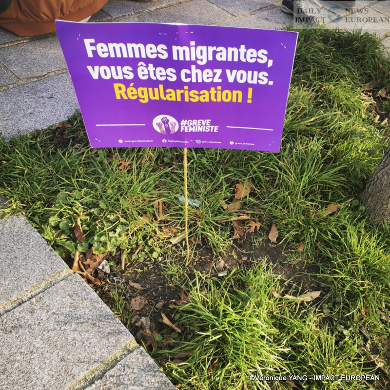 The rally was organized to call for a strike on work, domestic tasks and consumption. In order to move society and power, these visible actions will allow women to obtain equality. It is a call in solidarity with women around the world, faced with wars, bombings, exodus, victims of inequality, rape and who are struggling to feed their families. All these women are fighting to regain their rights and freedom. Through its actions, the collective says NO to reaction and NO to the extreme right whose ideas (hatred of others, mysoginy, racism, etc.) are becoming commonplace.