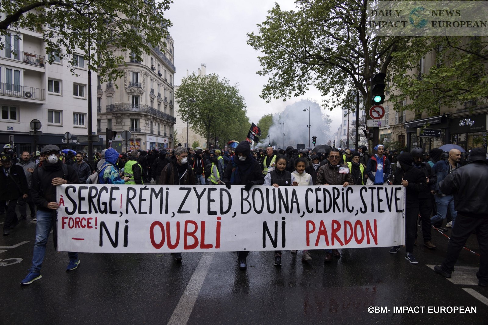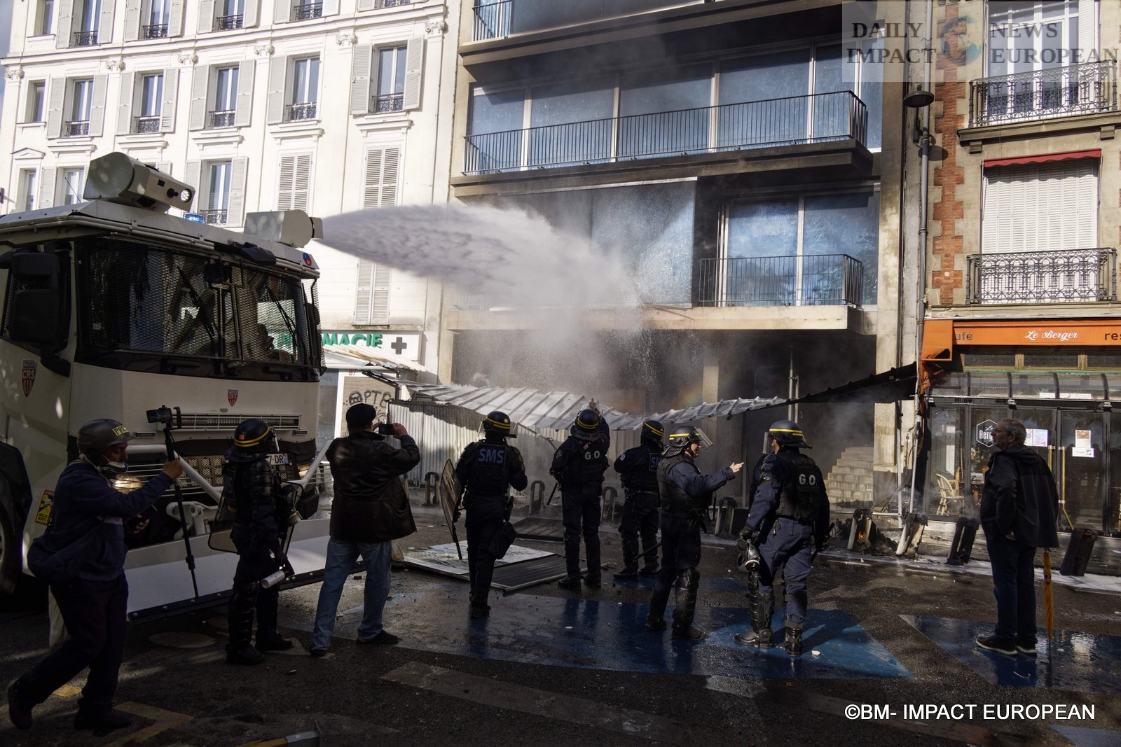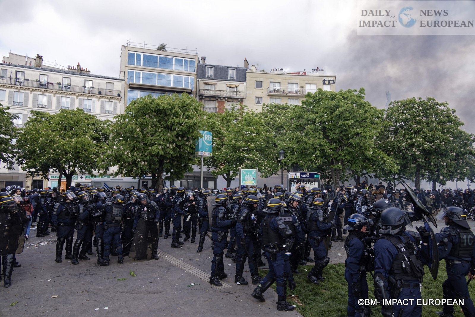 Place de la Nation was the scene of clashes between the black bloc and the police, with exchanges of stones, bottles, road signs thrown in all directions at the police. in turn, the security forces used tear gas, water cannon.