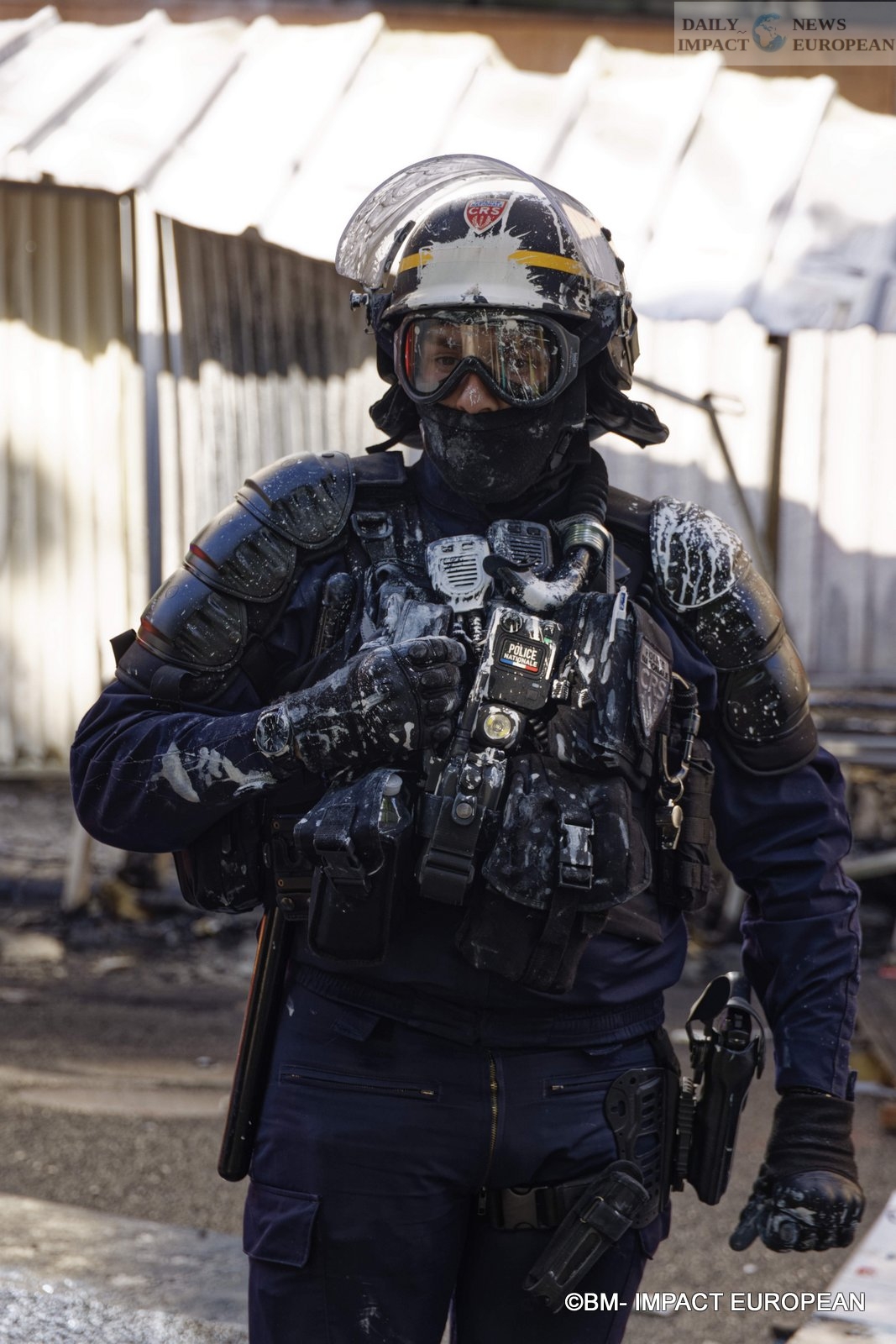 According to the Paris police headquarters, violent people had set fire to two cans of fuel that were in front of a construction site.