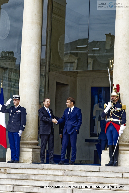 French and Israeli Presidents Emmanuel Macron and Isaac Herzog met at the Élysée, a few hours before the opening of the Paris Olympic Games.
