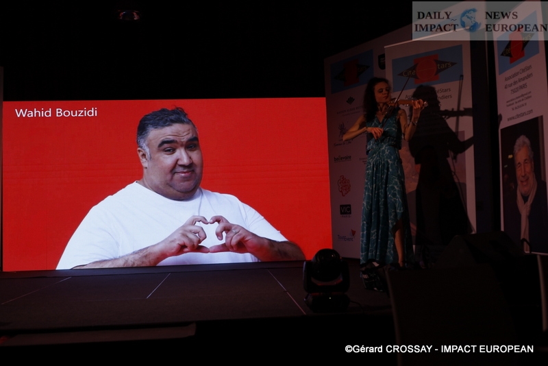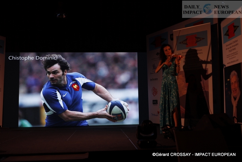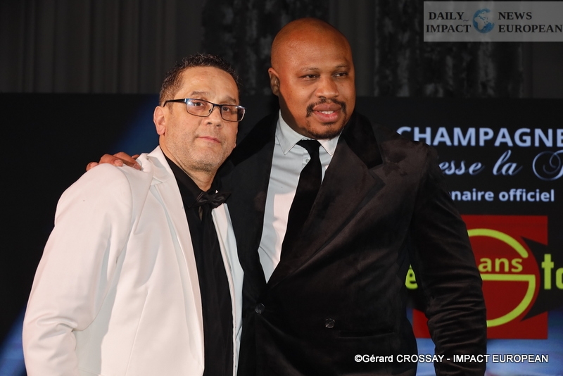 After the cocktail, the photocall, the speeches of Ghani Yalouz and Guy Amram who presented David Dondéi and the screening of the clip « Les enfants de CitéStars », the skaters Vanessa Gusmeroli and Gwendal Peizerat, called on stage the other guests who made a call for donations and the Raffle. Joniece Jamison started the first musical part with a Tina Turner medley before the awards ceremony: