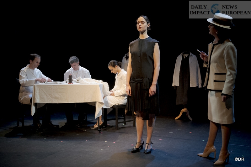 The piece begins with bursts of laughter, those of the little hands of a sewing workshop, laughter which is abruptly interrupted by the arrival of Mademoiselle Chanel, haughty and brittle, but elegant in her suit… Chanel.