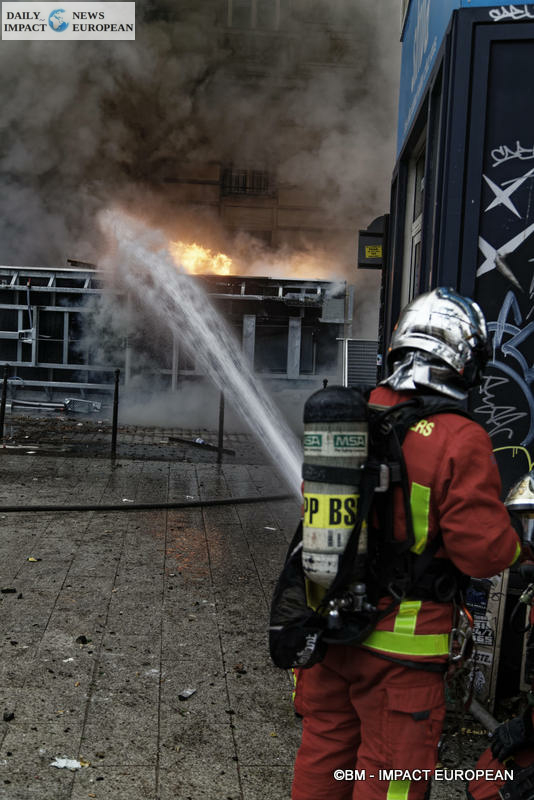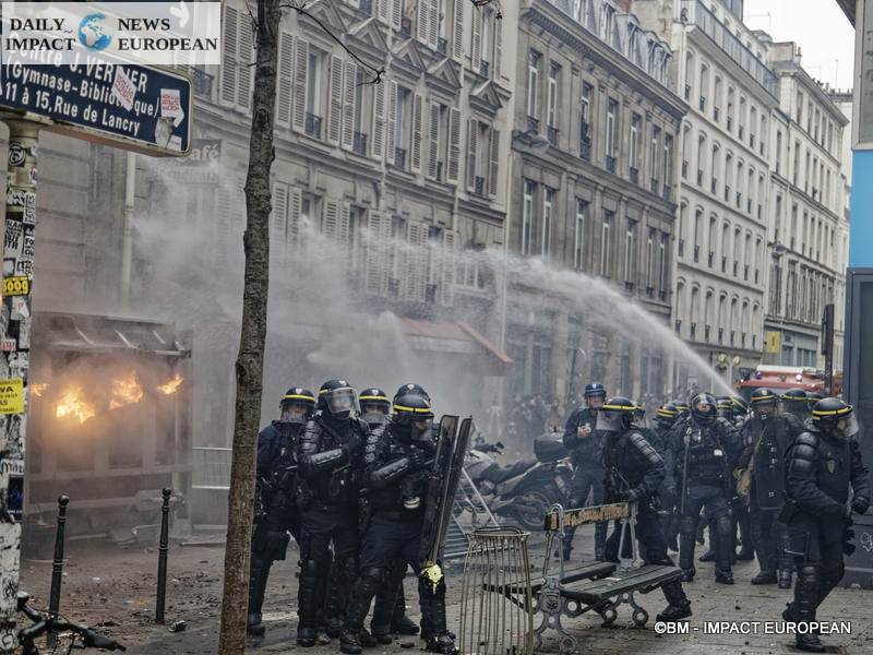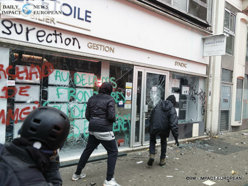 The Paris demonstration experienced some violence on Boulevard Magenta and Place de la Republique. About 50 thugs burned a prefabricated building site and smashed windows in and around the Place de la République, provoking a clash with the police and chaos in just a few minutes.