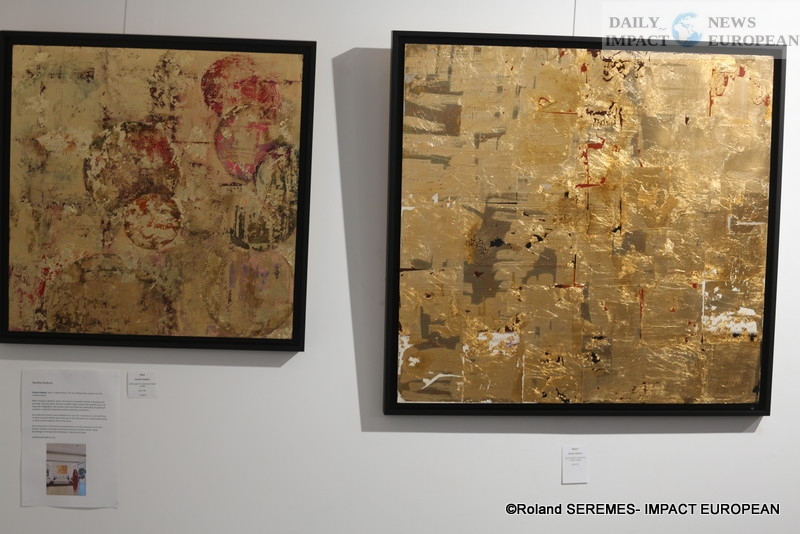 Sandra Hudson, with her abstract paintings, mixing gold leaf and other techniques.