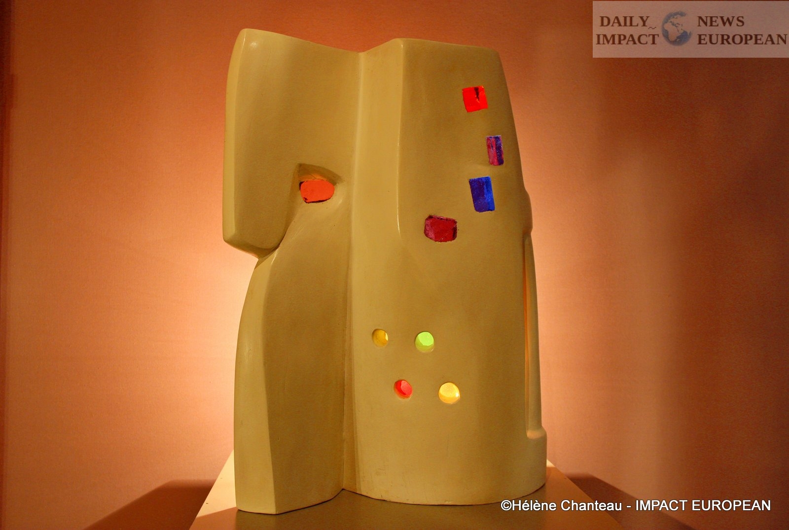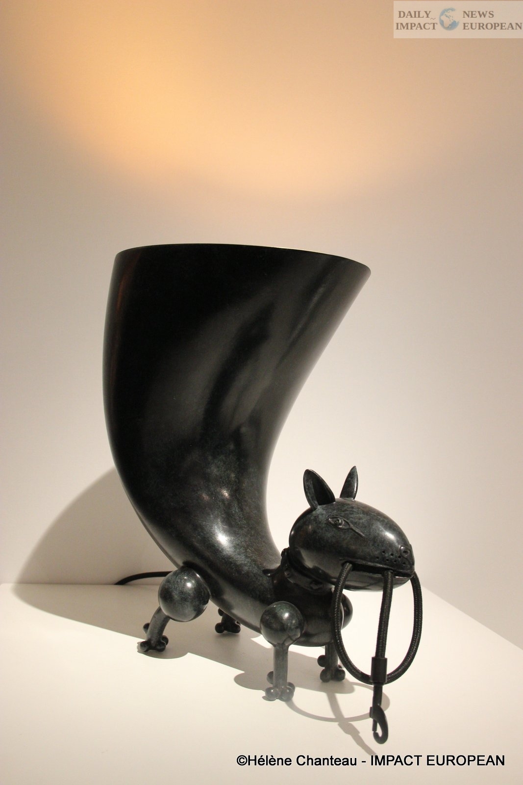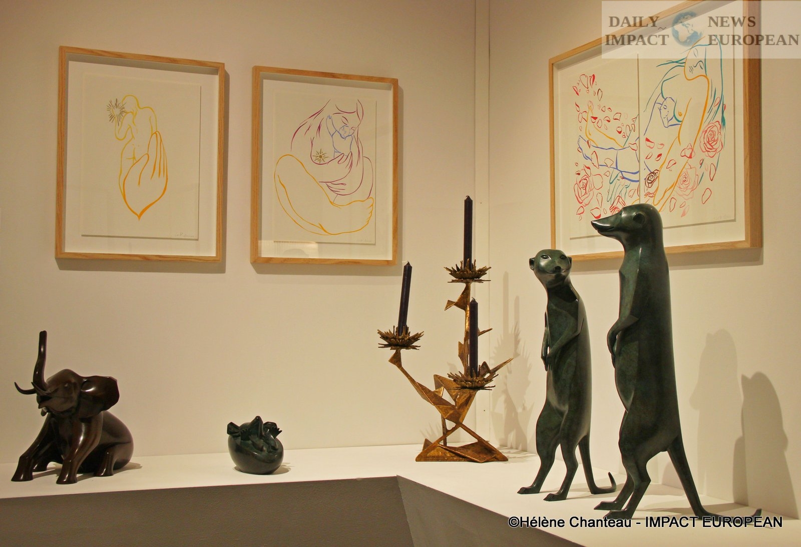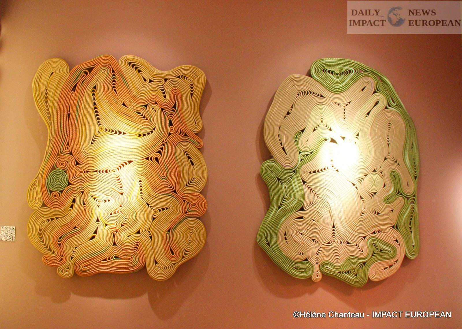 The gallery also exhibited sculptures by Fred Eerdekens, a Belgian artist. Several graphic copper sculptures have been made and with a play of shadows on the wall, messages are revealed.