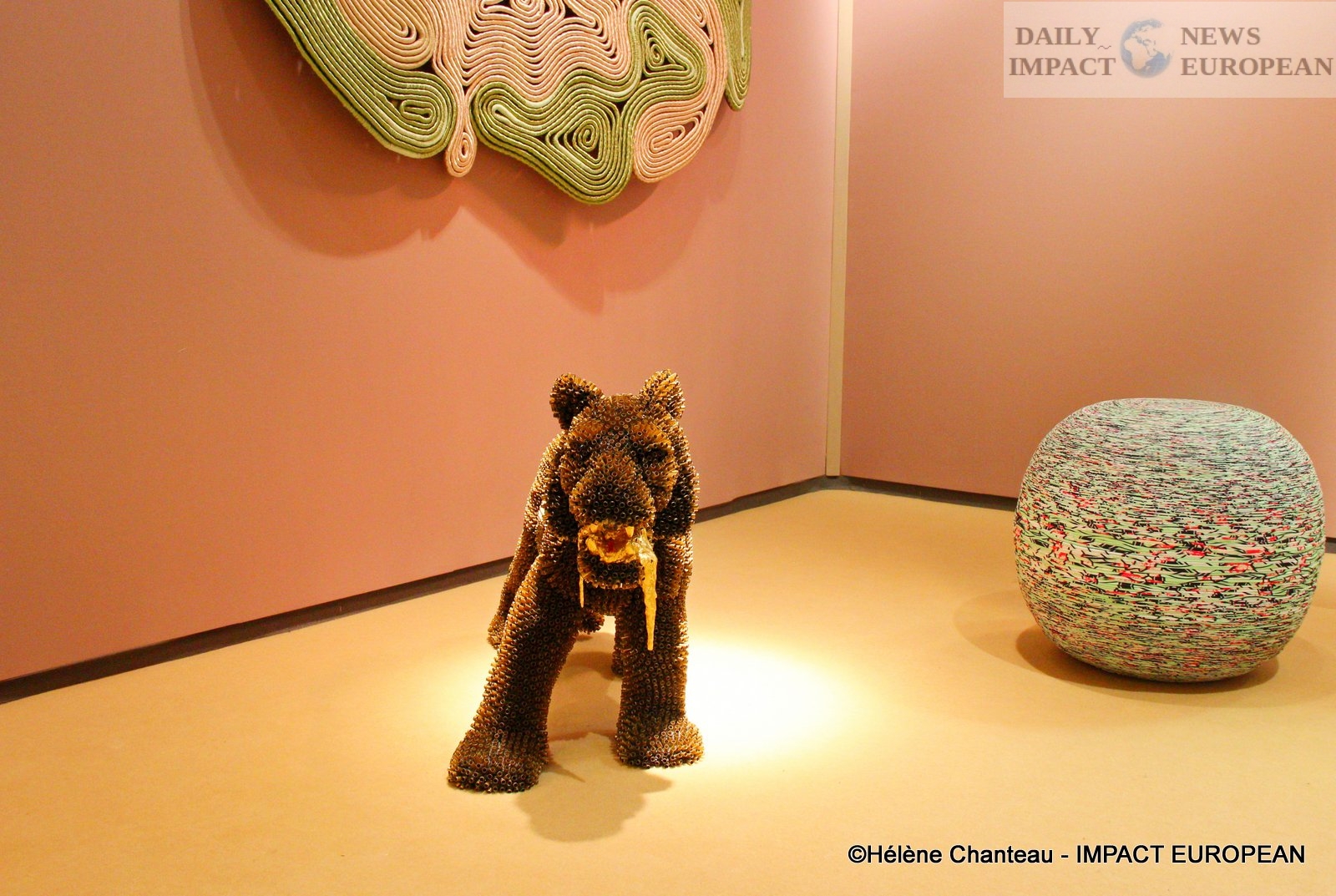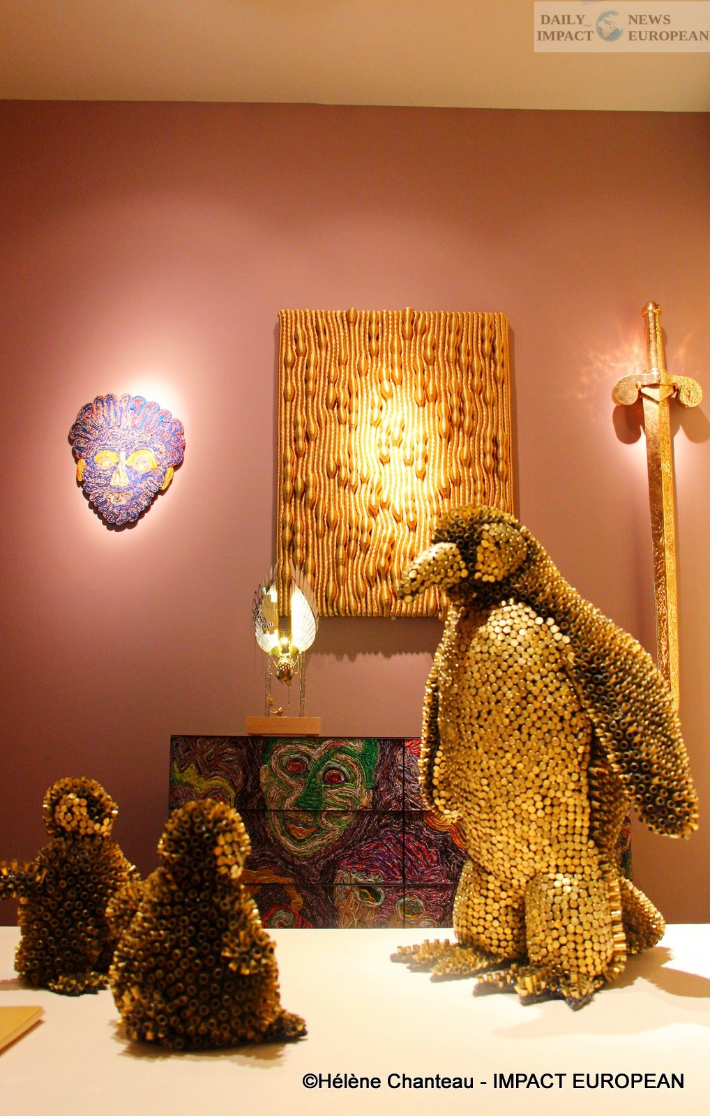 The gallery also featured animal sculptures (a family of penguins and a tiger) by artist Sehiba Demir. She creates her works using an unconventional material as it is gun bullet sleeves. This choice of material echoes the human threat to exotic animals.