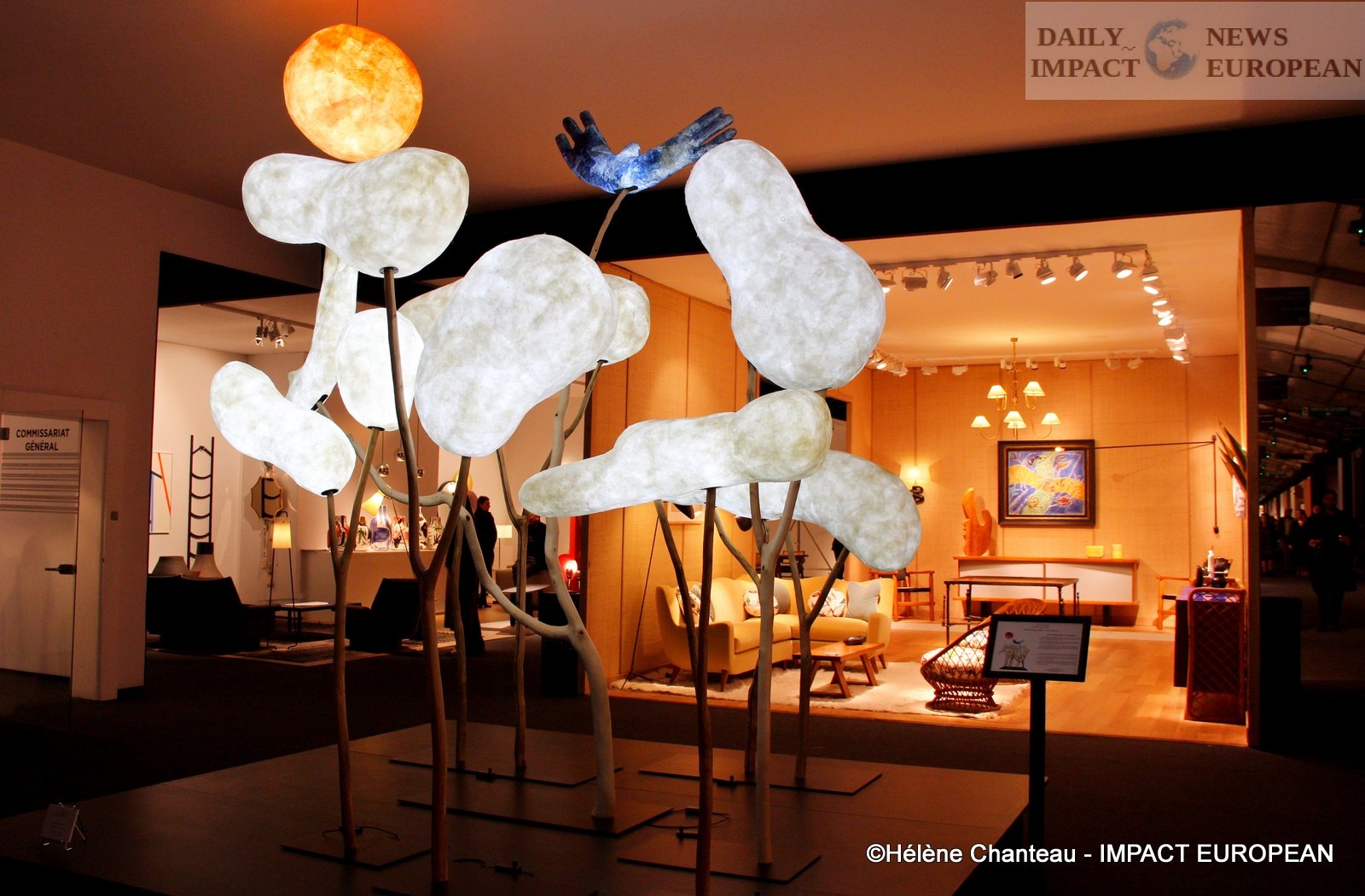 At the entrance to the show, visitors were able to discover the work « Above the Sun, only Sky », created by the interior architect and designer, Diane de Kergal. It is a luminous forest that invites you to travel. At the top of the trees, you can see clouds, a bird and a sun, which are made of natural silk. The artist designed casts then entrusted them to the silkworm factory/manufacture Sericyne, located in the Cévennes. Silkworms have been placed on the moulds, so that they carefully spin their silk and thus reproduce the expected shapes. Diane de Kergal then lit all her sculptures with LEDs.