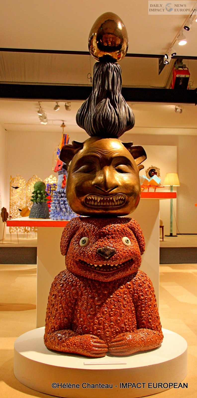 We could see on the show, the « Fantasma Totem », a sculpture of two meters high or even a monster head from a series that she entitled « My Inner Beast ».