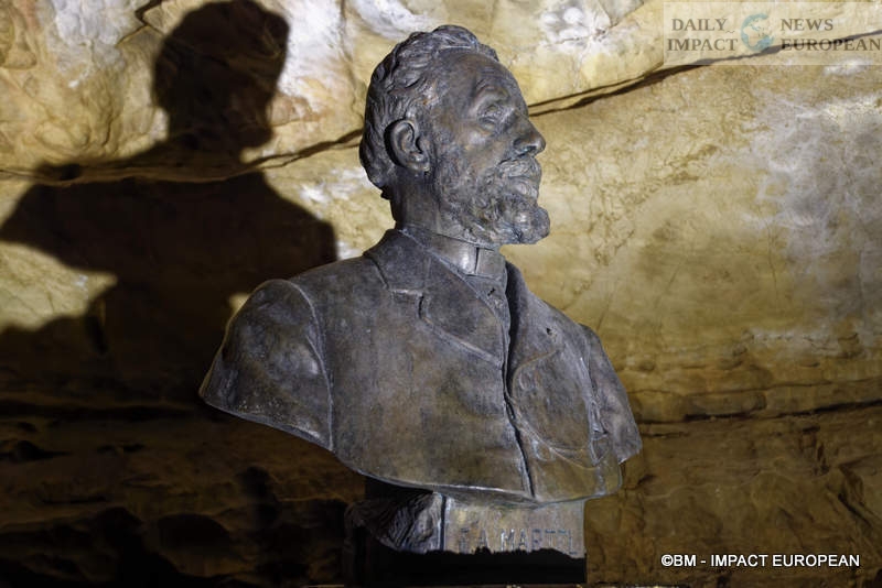 When the site was discovered, the discoverer of the underground galleries Edouard-Alfred Martel bought the land around the site but the owners demanded that he insert into the contract a clause which would guarantee them part of the loot, if he came to find it.