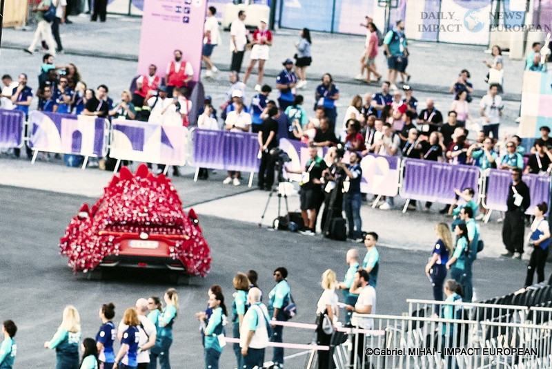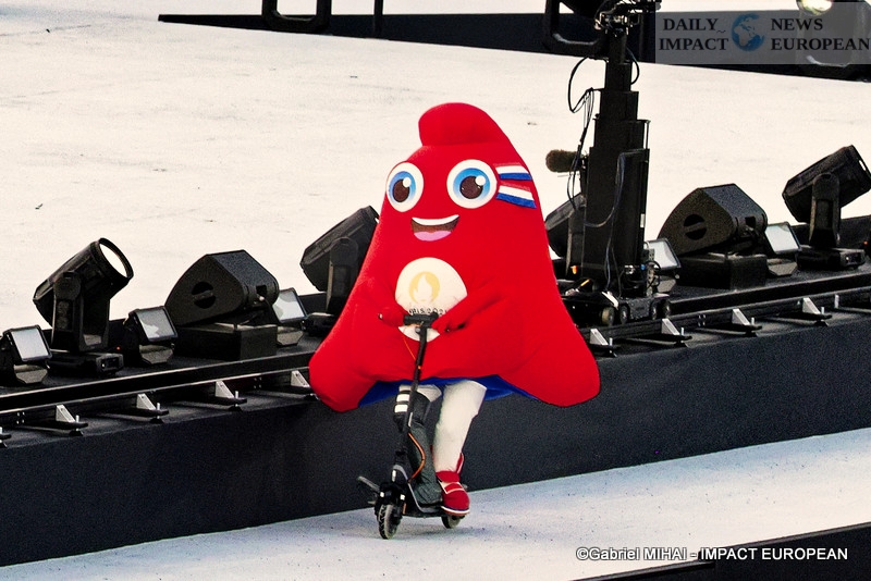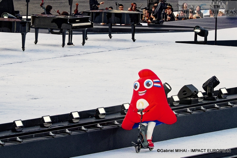 Apparently, the French have become attached to Phryge, the mascot of the Games, on a taxi covered and filled (outside and inside) with stuffed Phryges mascots, driven by Théo Curin, a disabled swimmer who had all four limbs amputated at the age of six, following meningitis.