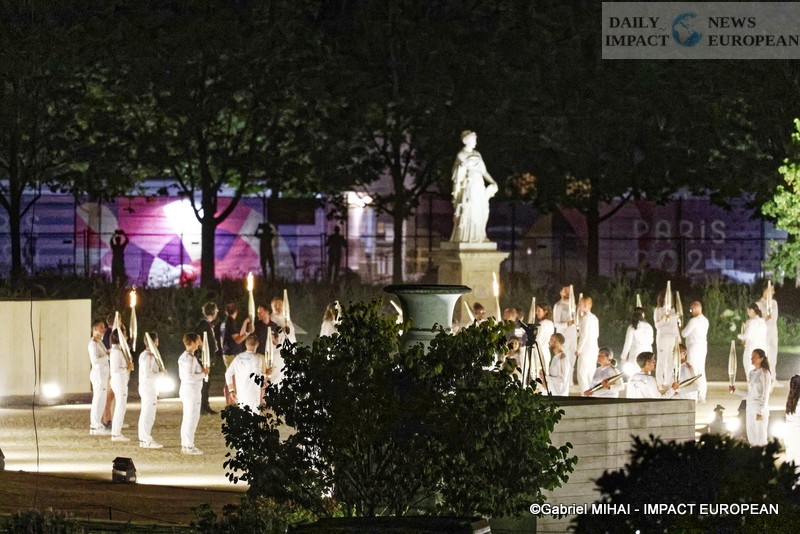 After the parade of athletes from 168 delegations, a succession of artists set the stage to set the protocol and artistic sequences to music, under the direction of Victor le Masne, musical director of the Paris 2024 ceremonies, accompanied by the Ensemble Matheus, an academy of young instrumentalists and singers.