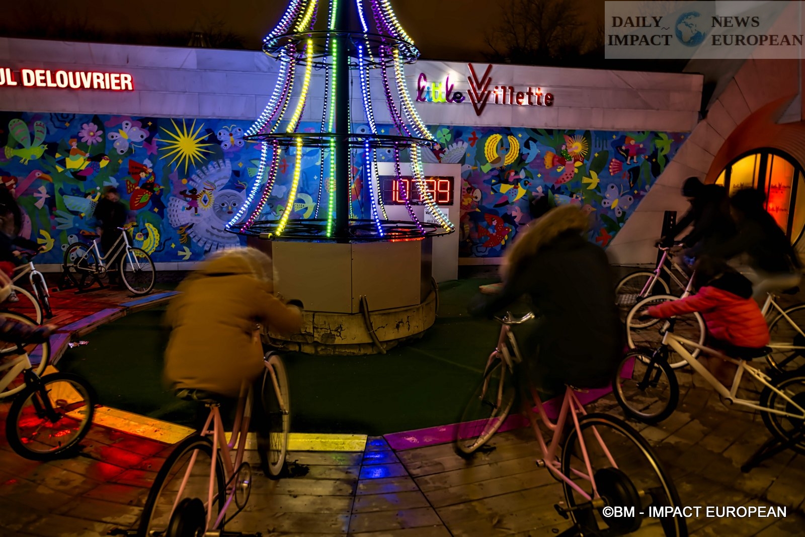 – The Vélosapin: This year the company Ludik Energie, based in Rennes, collaborated in the realization of a tree different from the others, enthroned forecourt of Little Villette. A great first since the lighting is produced thanks to visitors who pedal on bicycles, a truly eco-responsible operation to produce electricity and reflect on energy consumption.