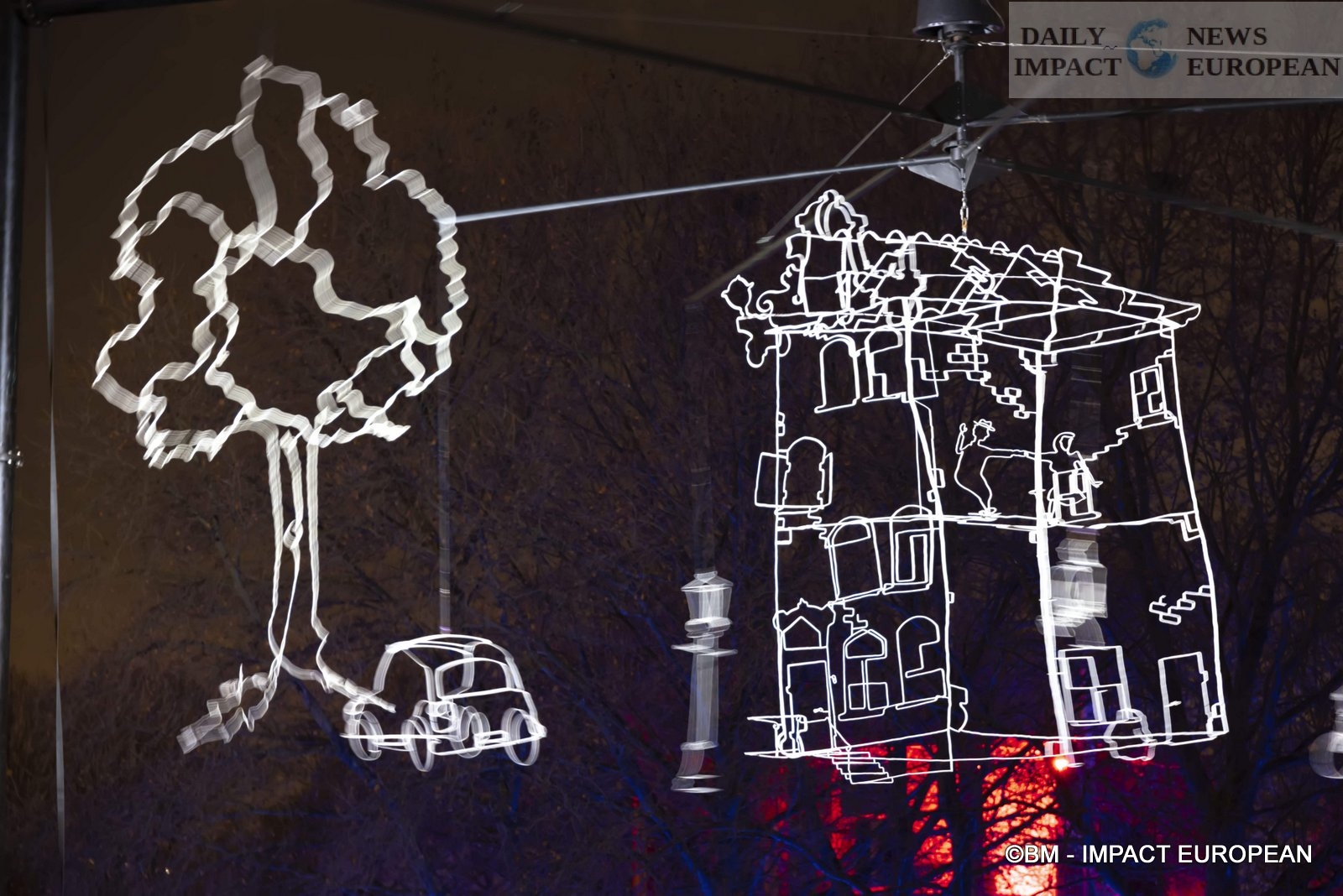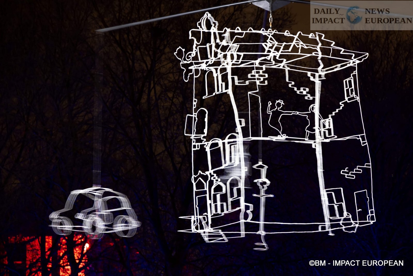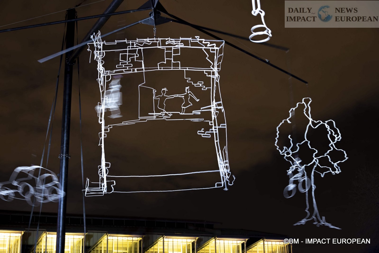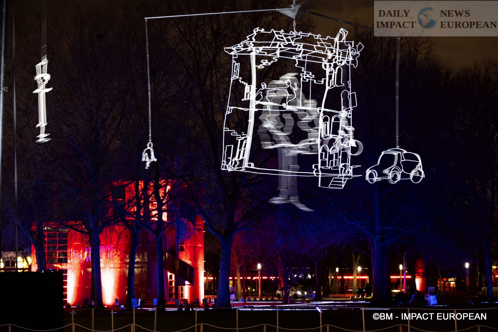 – Drawn in light: It is also Prairie du Triangle that we find this work produced by Ralf Westehof who also comes from the Netherlands, in collaboration with Light Art Collection of Amsterdam. It is a mobile of 13x13x11 meters, in stainless steel, powder coated and LED spotlights. reproducing a view of a street in Amsterdam. Presented for the first time in France, this unique performance made the artist known throughout the world: in Belgium, Romania, Sweden, England, Israel, Singapore and Taiwan. This is an enlargement, 22 times larger, of a 60 cm model, originally.