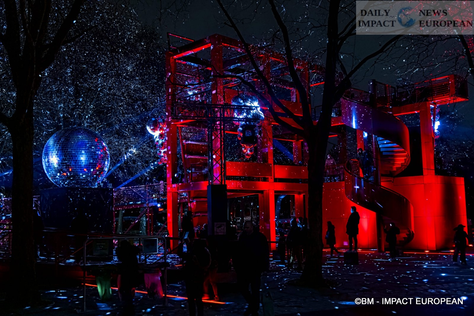 – Forbidden Fruit: Imagined by ACTLD in Belgium, this work is installed Parvis de la Folie Belvédère. Composed of a disco ball almost 3 meters in diameter and many small balls of different sizes. Presented in Paris for the first time, this visual and sound installation makes spectators dream. ACTLD has been working for 25 years in the concept of avant-garde lighting using the latest technologies, multimedia and visual storytelling. Design, Art and Innovation are the hallmarks of ACTLD.