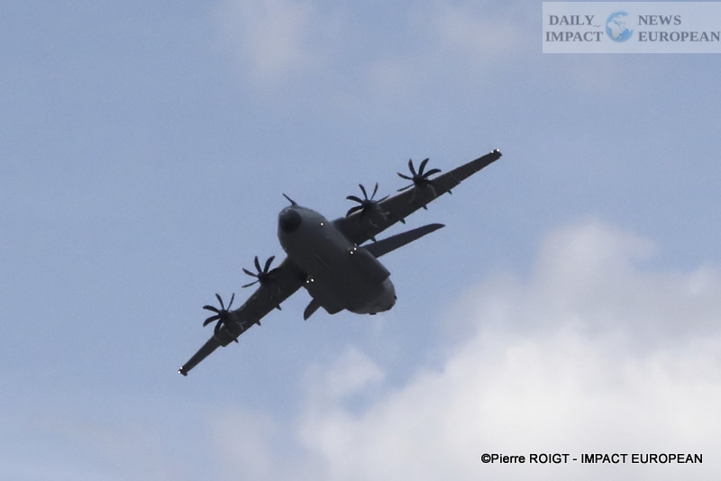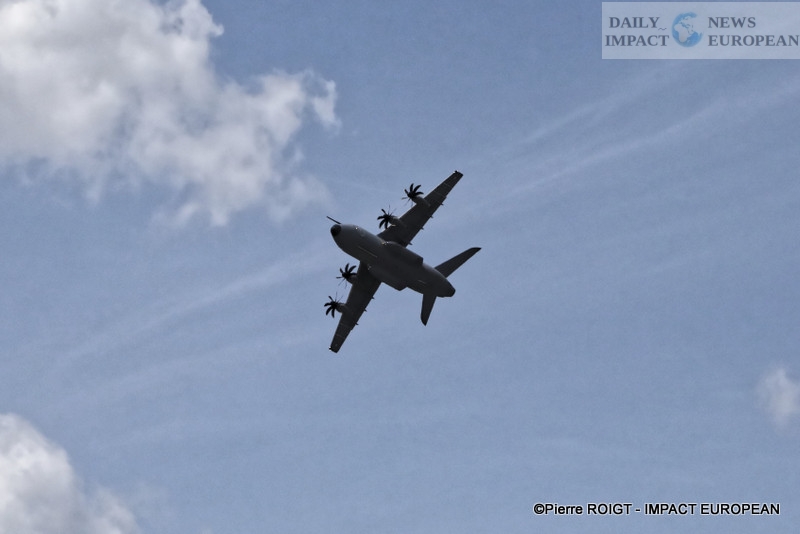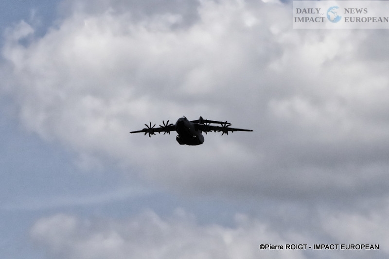 Major Déborah Ferrand, a parachutist, performed a jump from an A400M. The Prime Minister will meet her a little later with the sponsors of the « Women in Aerospace » initiative, ahead of a day dedicated to promoting women in the sector on Friday.