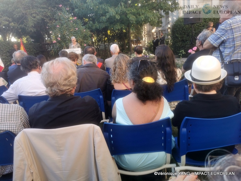 This year, for his 78th birthday, the tribute ceremony, organized by the association on August 24, 1944, took place at the « Jardin des combatants de la Nueve ». It was followed by the opening of the exhibition at the Halle des Blancs-manteaux, (75004): « Faces of exile 1939-2019 », from the Resistants of the Retirada to today. It is composed of 2 separate exhibitions: « Paths of exile », photographs by Philippe Gaussot and « La sangre no es agua » by Pierre Gonnord. Many guests were present, including Mrs. Gongora, descendant of a fighter, Mrs. Véronique Salou, president of the association August 24, 1944, the painter Juan Chica-Ventura, the little -son of the photographer Philippe Gaussot, Spanish and French official representatives.