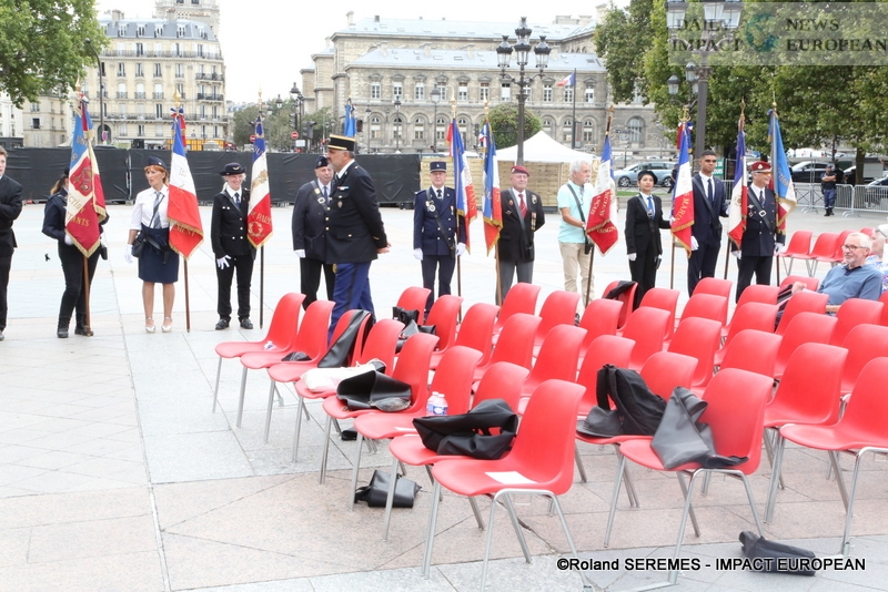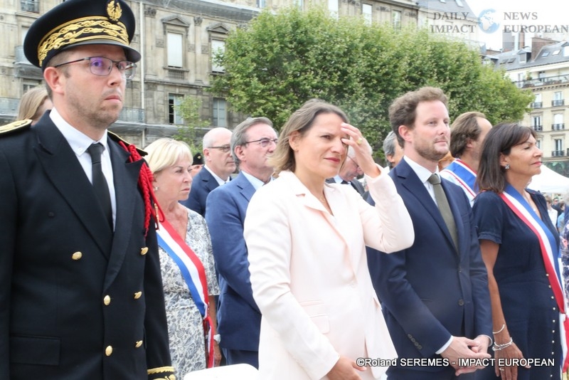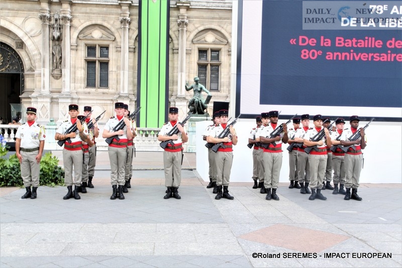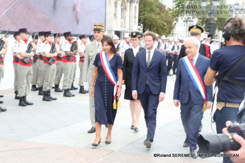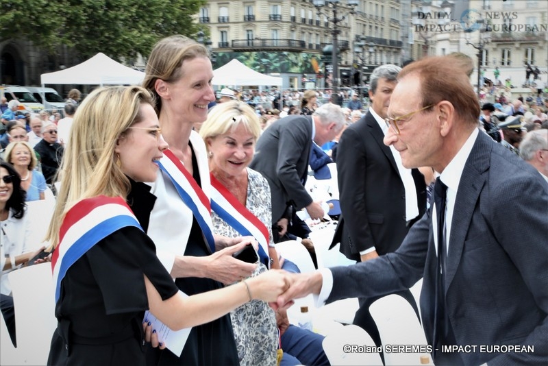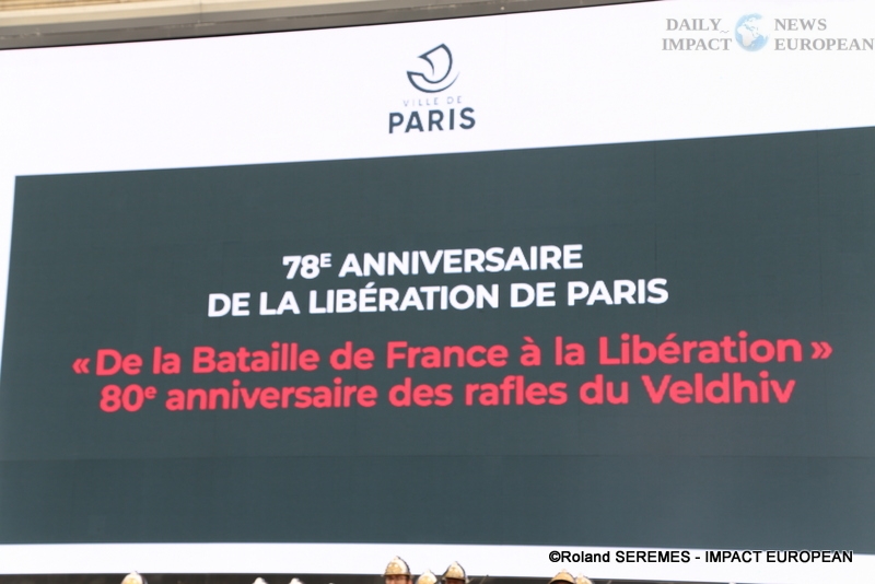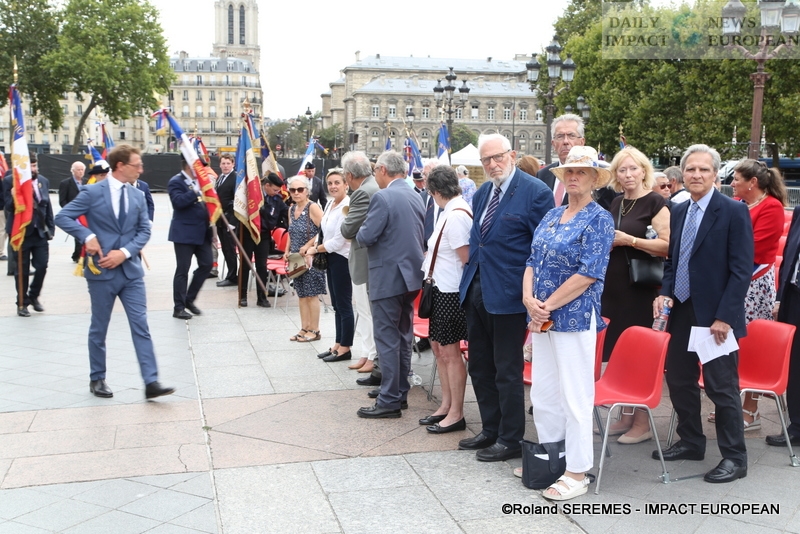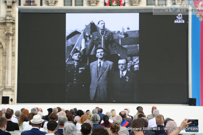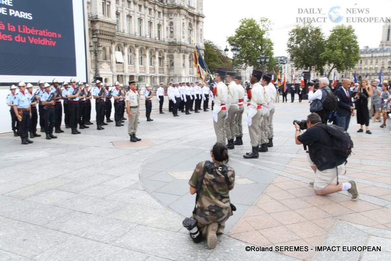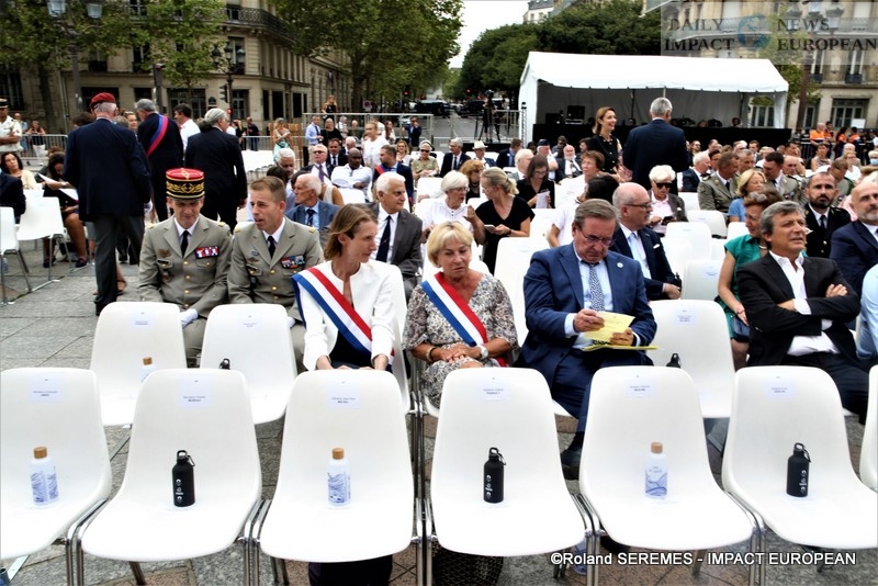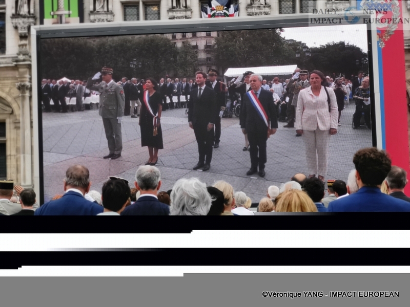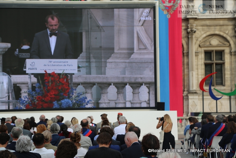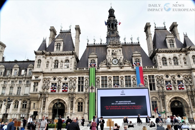 To commemorate the 78th anniversary of the Liberation of Paris, a literary, historical and musical evocation, « From the phoney war to the liberation, 1942: the Veldhiv roundup », was held on the forecourt of the Hôtel de Ville , in the presence of the Mayor of Paris, several district mayors including Ariel Weil (Paris center), Jeanne d’Hauteserre (75008) … and many guests, the actors Marion Isvi and Nicolas Evrard read the 8 texts and the epilogue (« Paris blocked », a poem by Victor Hugo »), after the taking up of arms, and the bagpipe piece by Pierrick Barbier, from the Brigade des Sapeurs-Pompiers de Paris. The 8 episodes, the prologue (« From the funny war to the Battle of France ») and the epilogue were accompanied by musical tapes.