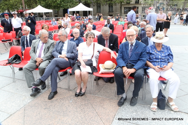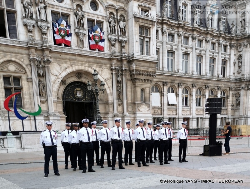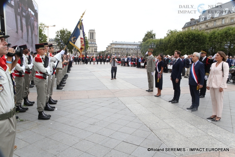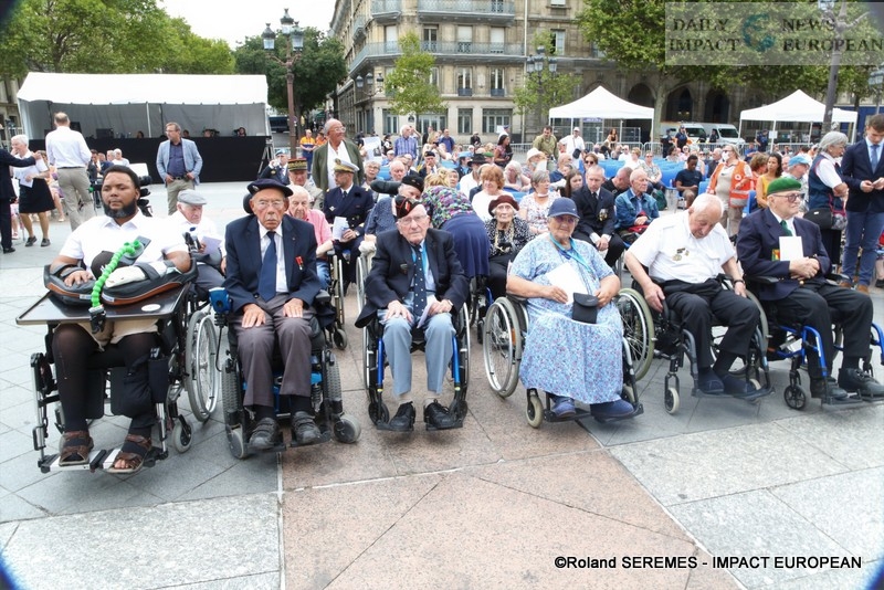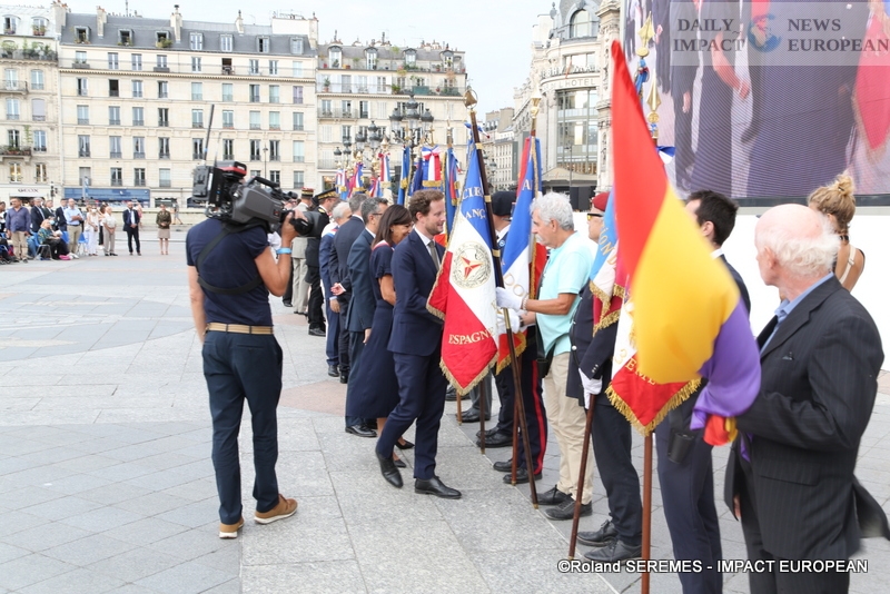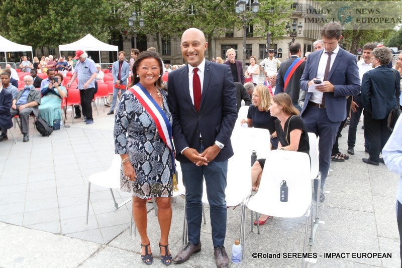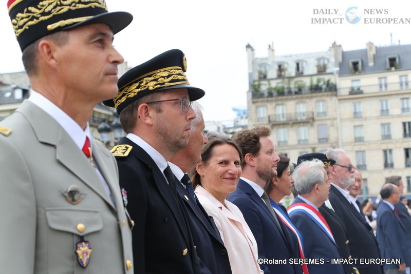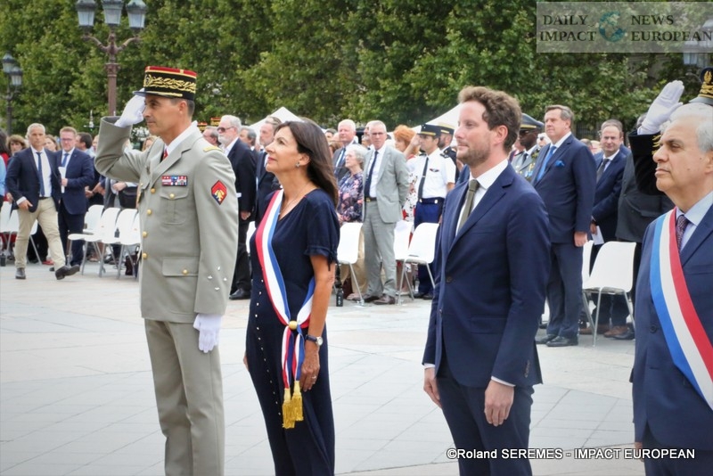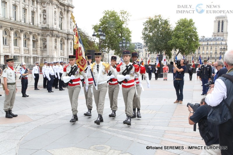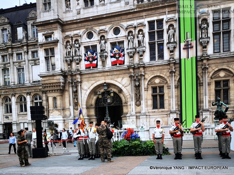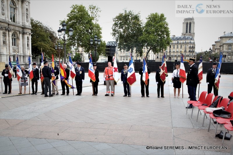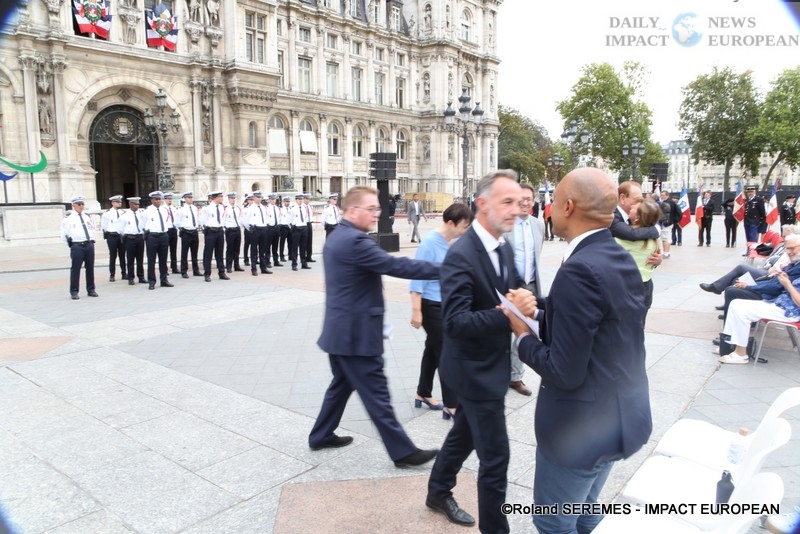 To commemorate the 78th anniversary of the Liberation of Paris, a literary, historical and musical evocation, « From the phoney war to the liberation, 1942: the Veldhiv roundup », was held on the forecourt of the Hôtel de Ville , in the presence of the Mayor of Paris, several district mayors including Ariel Weil (Paris center), Jeanne d’Hauteserre (75008) … and many guests, the actors Marion Isvi and Nicolas Evrard read the 8 texts and the epilogue (« Paris blocked », a poem by Victor Hugo »), after the taking up of arms, and the bagpipe piece by Pierrick Barbier, from the Brigade des Sapeurs-Pompiers de Paris. The 8 episodes, the prologue (« From the funny war to the Battle of France ») and the epilogue were accompanied by musical tapes.
