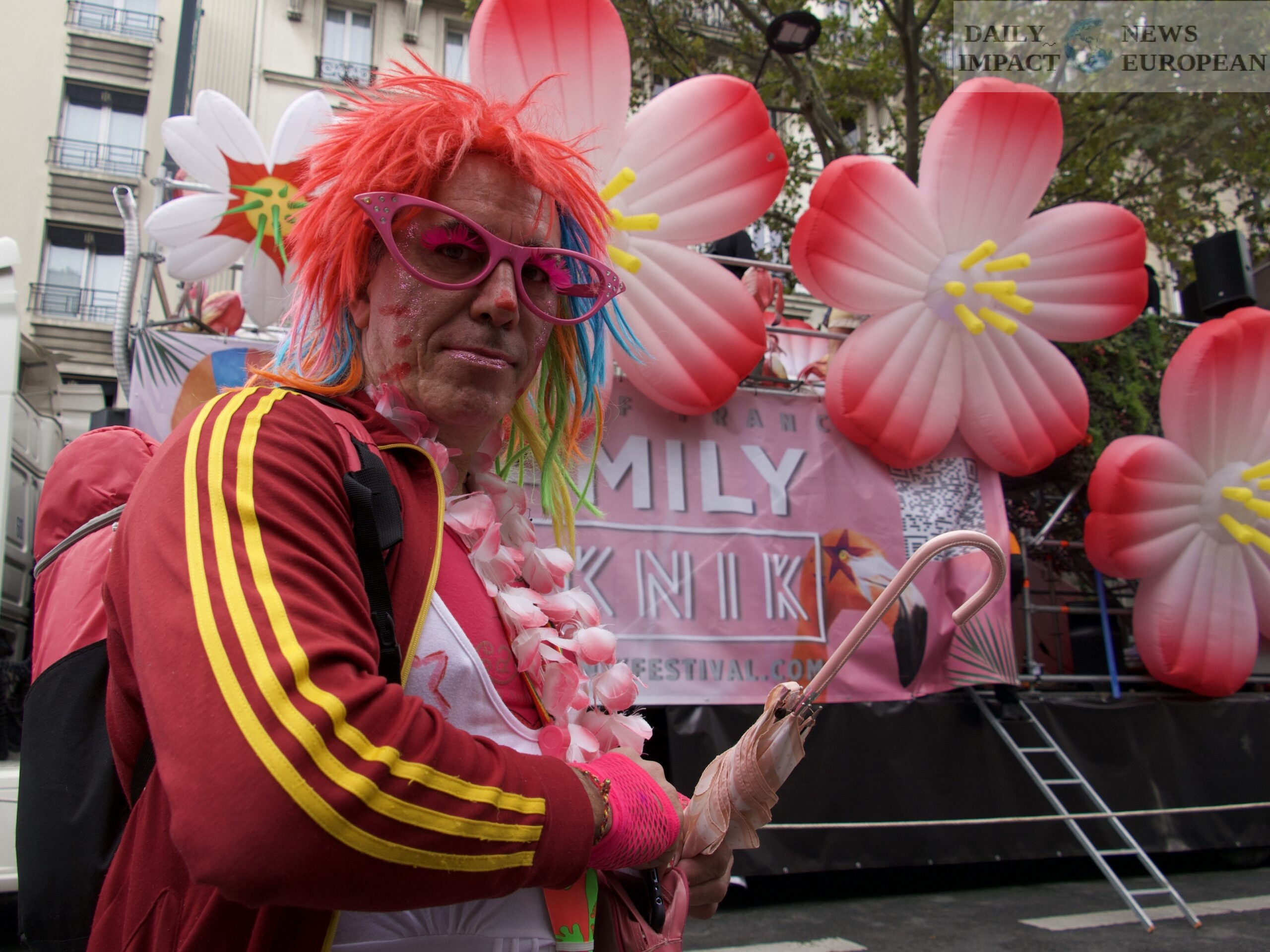 On the eleven tanks present on the course, for the pleasure of the ears but also the eyes. Note the float of the Arab World Institute, decked out in the colors of Habibi, the revolutions of love, its next major exhibition on LGBTQIA + identities, and which brought together DJs like Hadj Sameer, Zaatar, Sara Dziri and kasbaH.