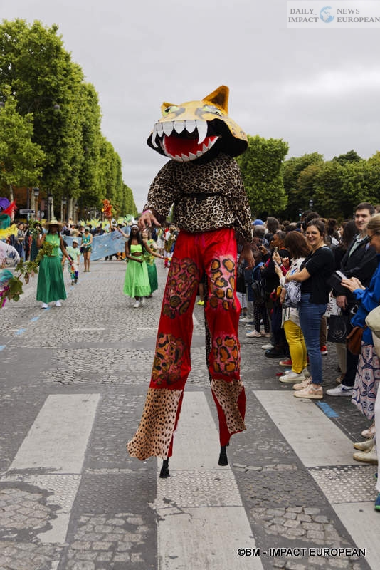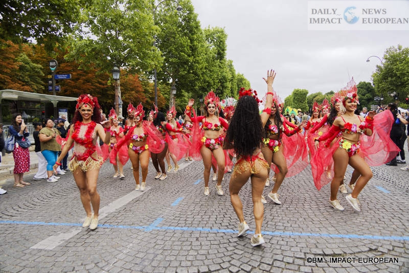 Some twenty troupes, costumed in feathers and sequins, enlivened the Champs-Élysées to the rhythm of samba, bringing to life the blend of cultures and diversity.