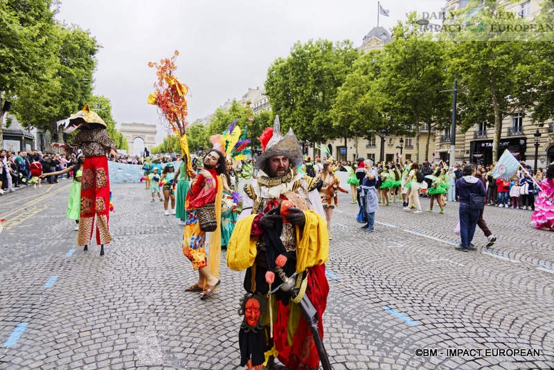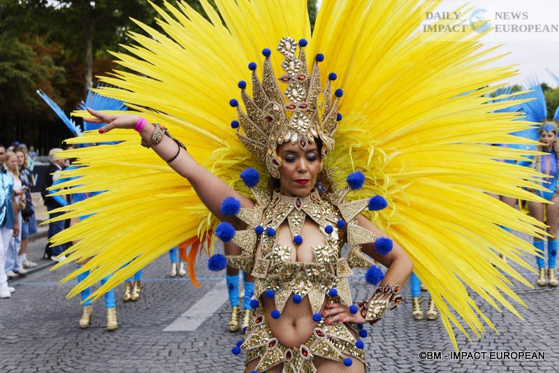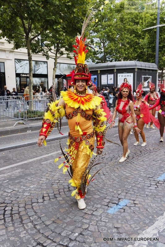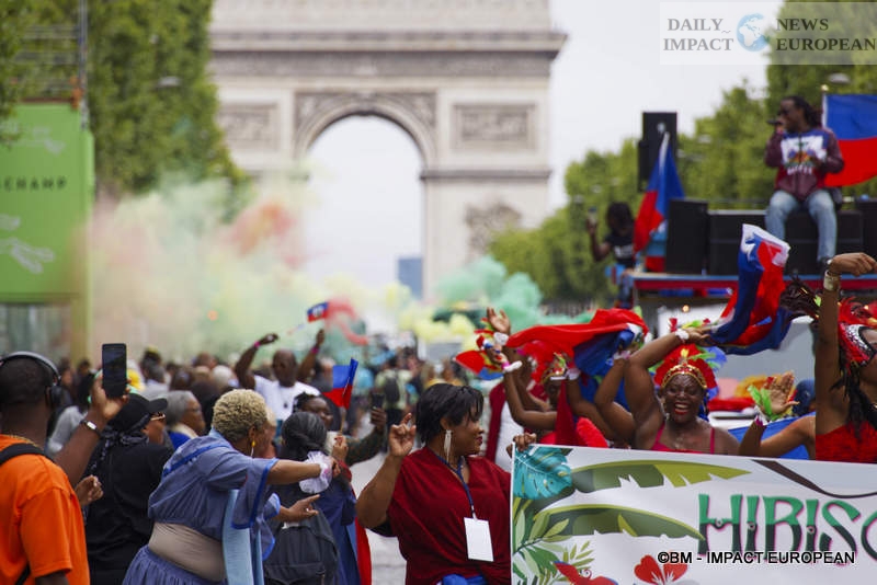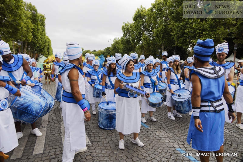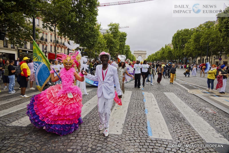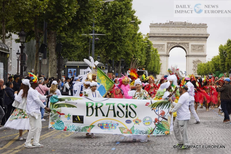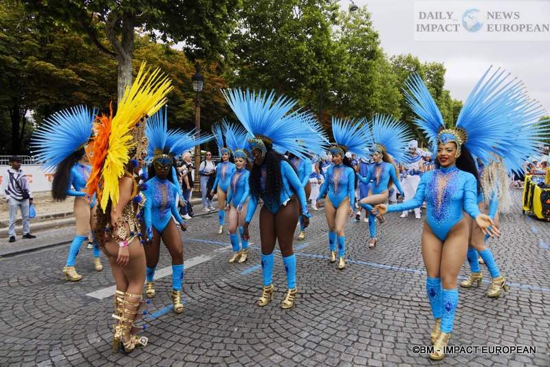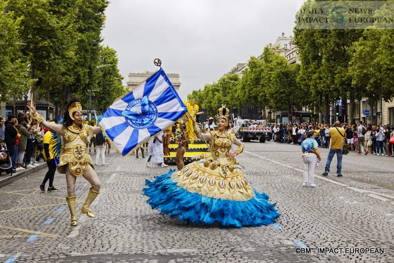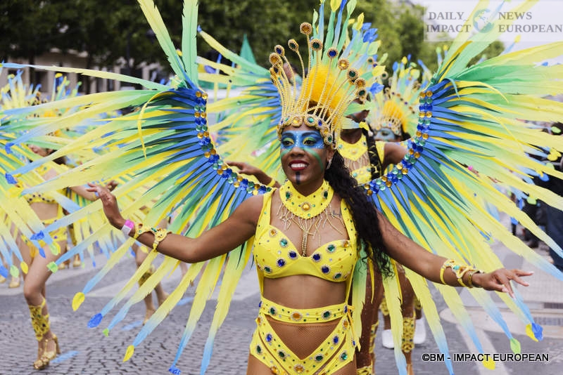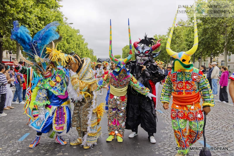 It’s gray in Paris this Sunday, July 6th, but not everywhere. At least not on the Champs-Élysées, where the Tropical Carnival took place, as it has since 2017, to celebrate its 25th anniversary.