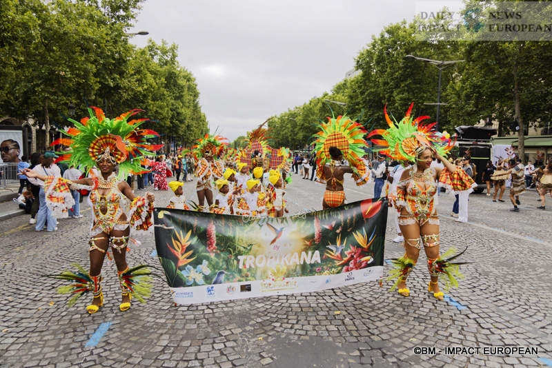 The parade was organized by the Paris Tropical Carnival Federation in partnership with the Paris City Hall.