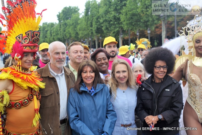 The 25th edition of the Paris Tropical Carnival was inaugurated by Anne Hidalgo, Mayor of Paris, and Jeanne d’Hauteserre, Mayor of the 8th arrondissement of Paris, surrounded by prestigious figures from the carnival world and the Queen of the Paris Tropical Carnival. Among the dignitaries present were Ian Comfort, President of the Notting Hill Carnival in London; George Paulangevin, former Minister and former Member of Parliament for Paris; Jeanne d’Hauteserre, Mayor of the 8th arrondissement; and Audrey Pulvar, Deputy Mayor of Paris.
