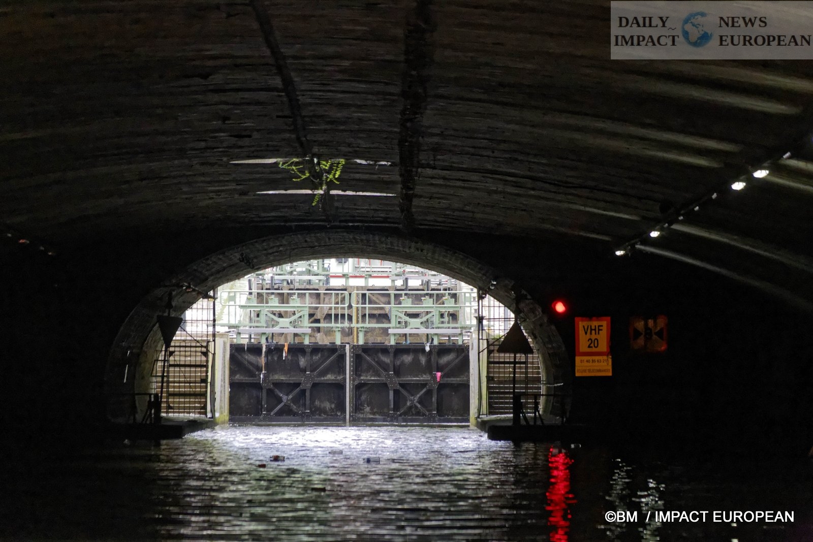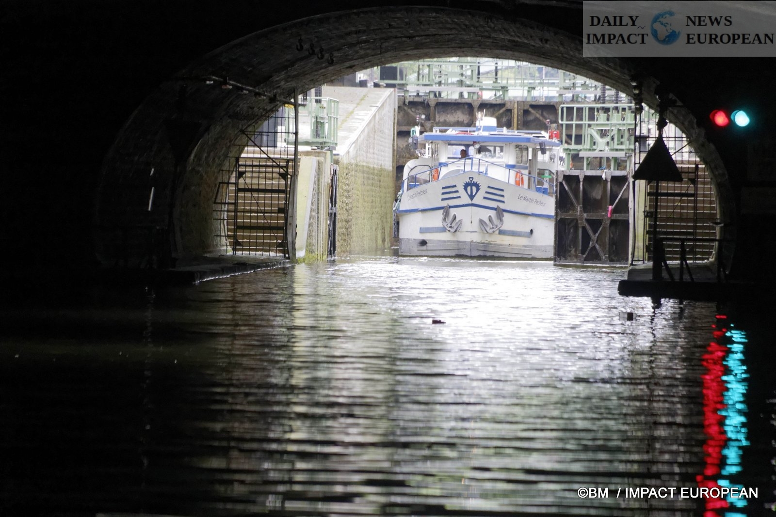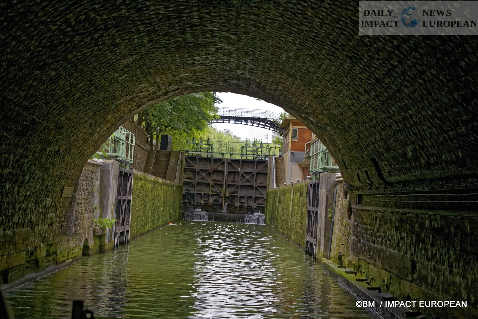 4.55 km long, the St Martin canal crosses the 10th and 11th arrondissements. It connects the Port de l’Arsenal to the Bassin de la Villette with 2 km underground, with numerous structures including 4 bridges (2 fixed and 2 rotating), 5 cast iron footbridges and 9 locks including the Récollets lock. Because of its route, the canal has recovered some of the water from the Parisian sewers. The waters of the Faubourg St Martin join it at the level of the Bassin des Morts then it follows the route of the old sewers to the Seine.