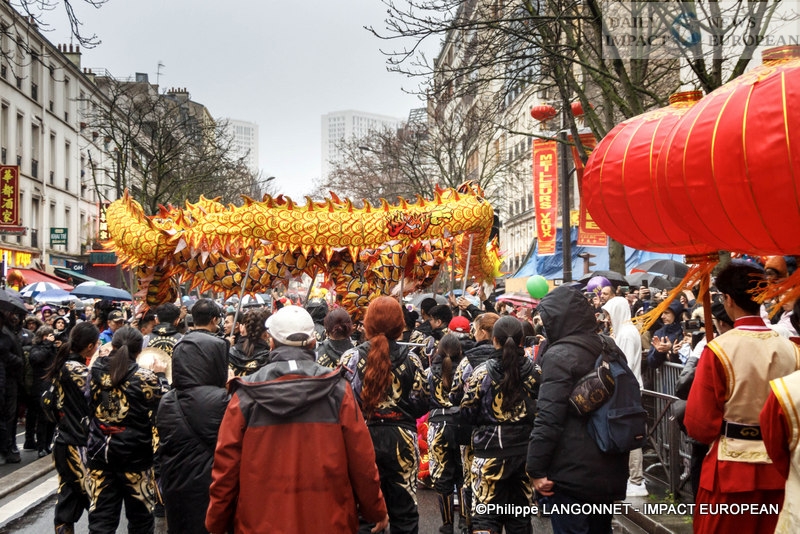 The festivities began with a grand parade on the Champs Elysées on Sunday February 4. It was then the Marais district on the 10th, followed by Belleville on the 13th, ending with the most spectacular Chinatown Paris, in the 13th arrondissement, on February 18. This parade, organized by the Paris Lion Sport association, presented 5 lions and 2 dragons and wandered from 2 p.m. through the streets of the neighborhood.